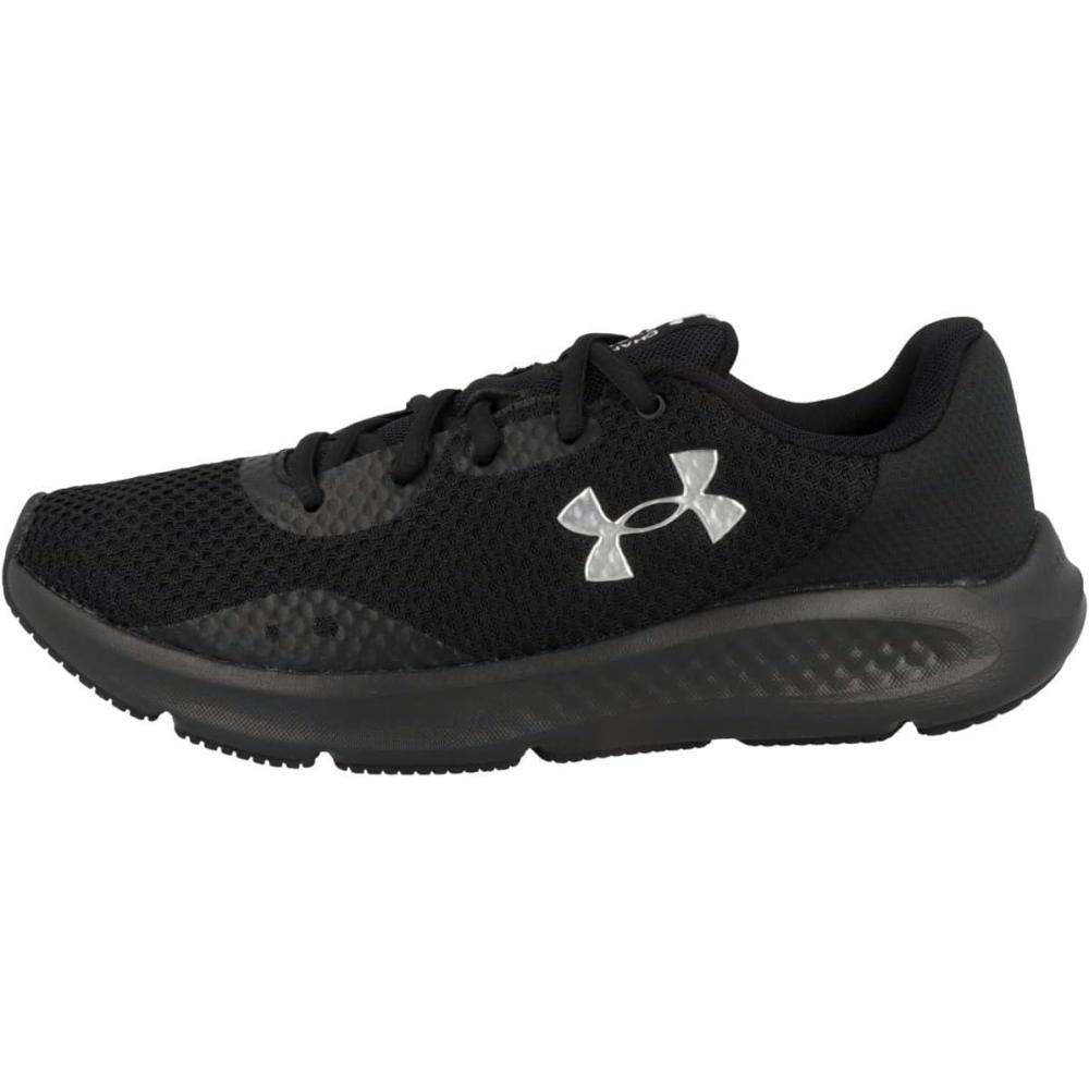 Under Armour Women's Charged Pursuit 3 Running Shoe(Black/Black/Metallic Silver)