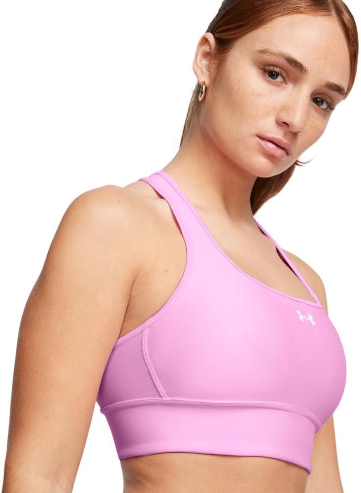 Under Armour Womens Crossback Longline Mid-Impact Sports BraBra((638) Stellar Pink / / White)