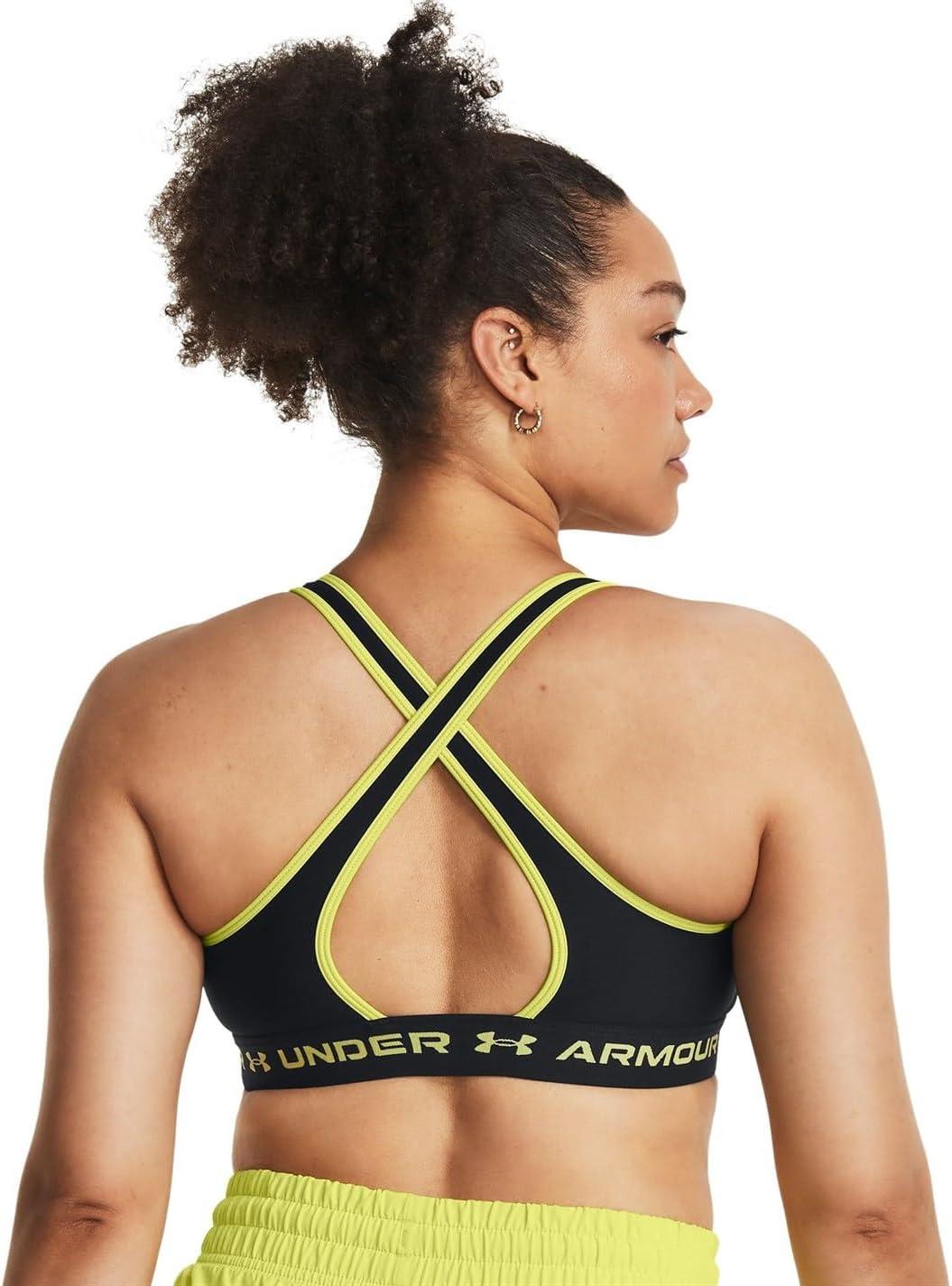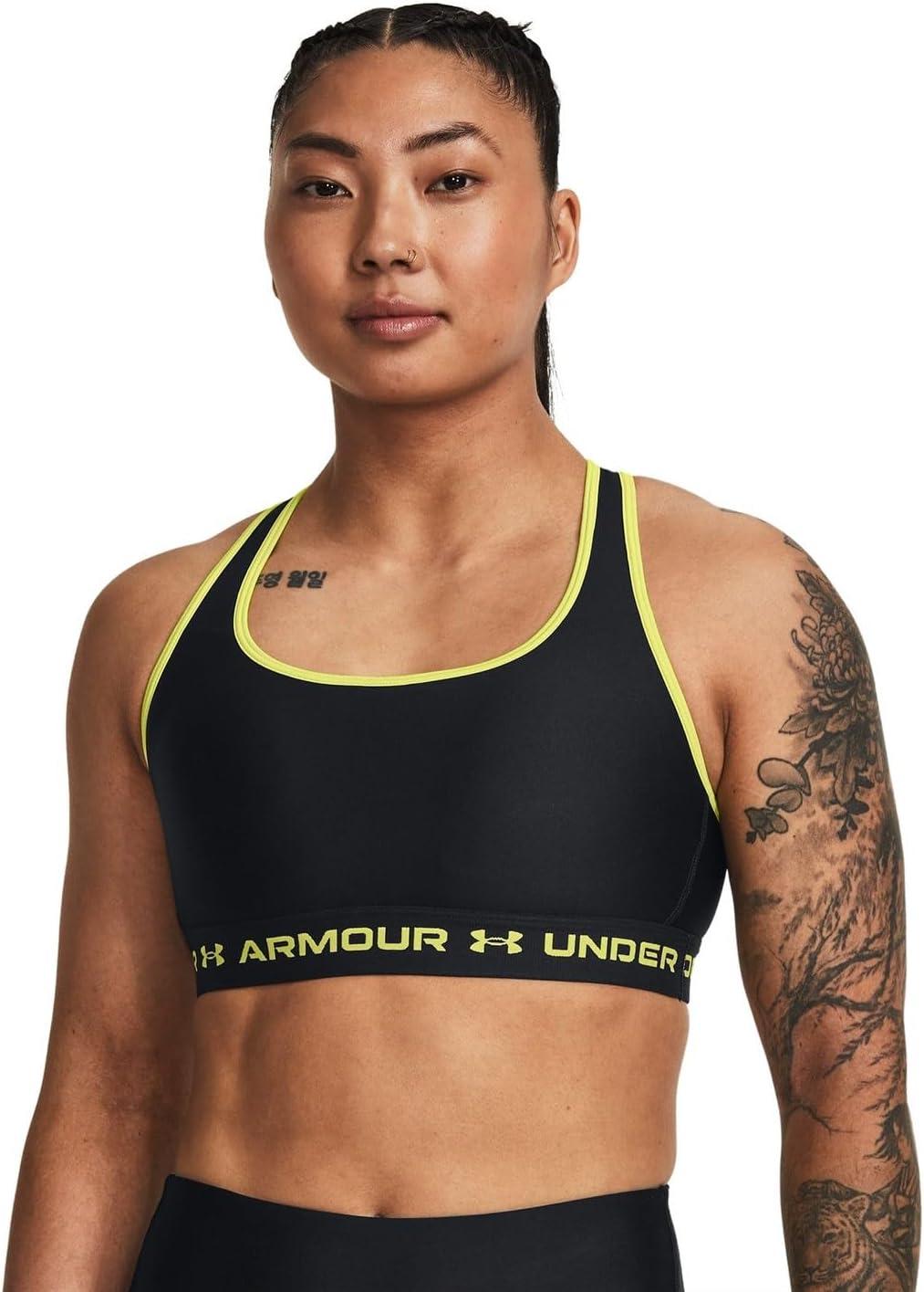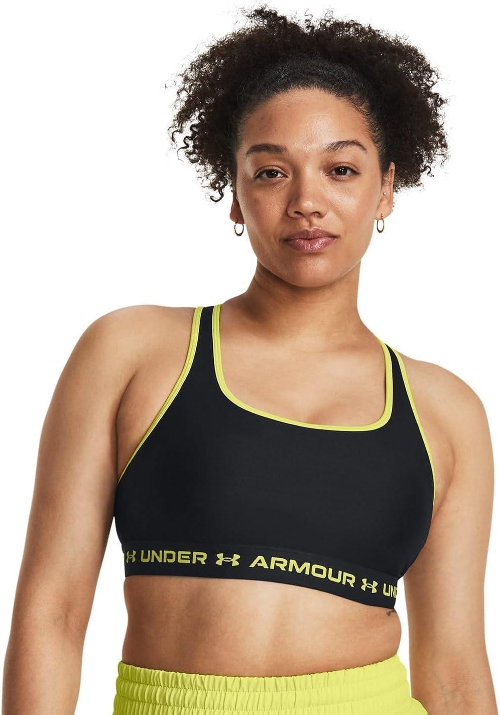 Under Armour Women’s Crossback Mid Impact Sports Bra((003) Black / / Lime Yellow)