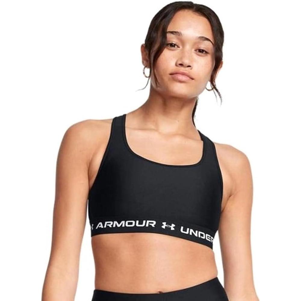 Under Armour Women’s Crossback Mid Impact Sports Bra((006) Black / Black / White)