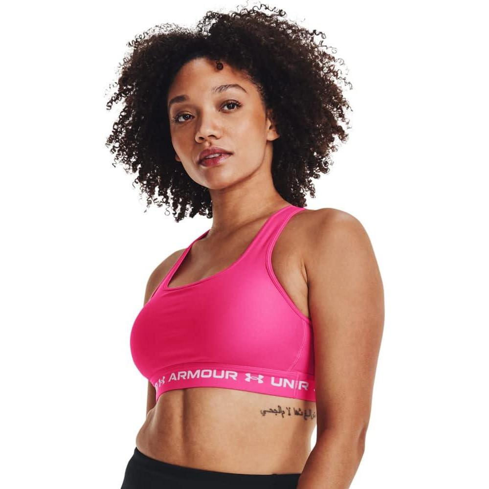 Under Armour Women’s Crossback Mid Impact Sports Bra(Electro Pink (695)/White)