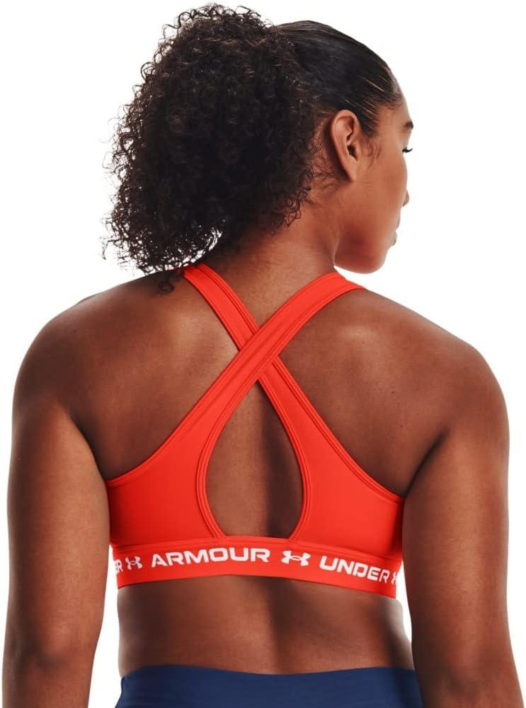 Under Armour Women’s Crossback Mid Impact Sports Bra(Phoenix Fire (296)/White)