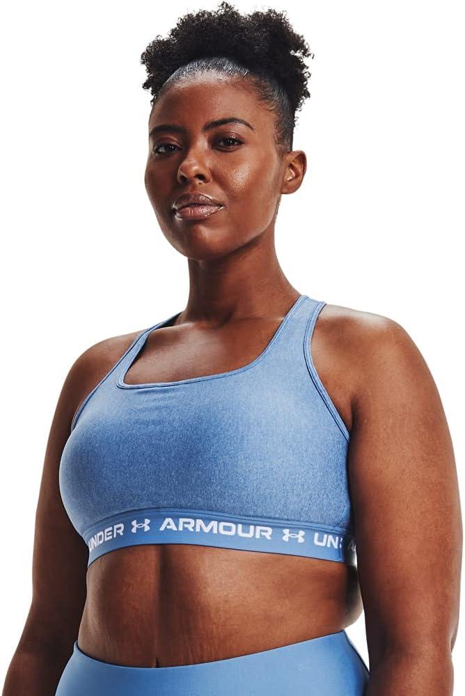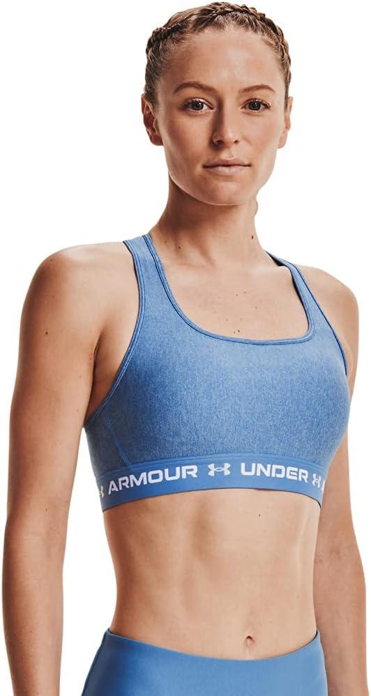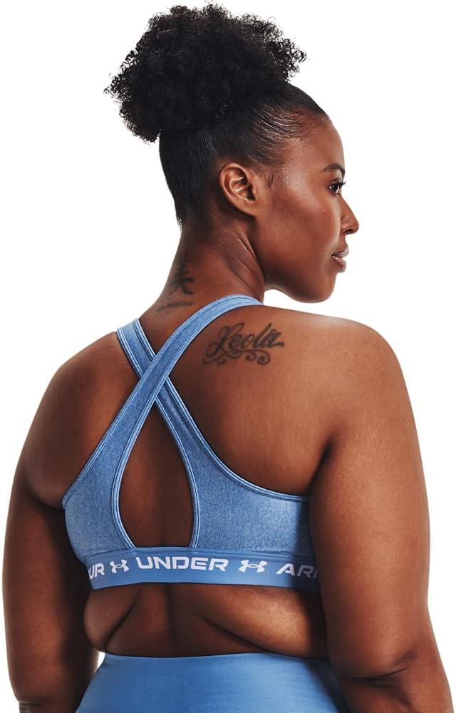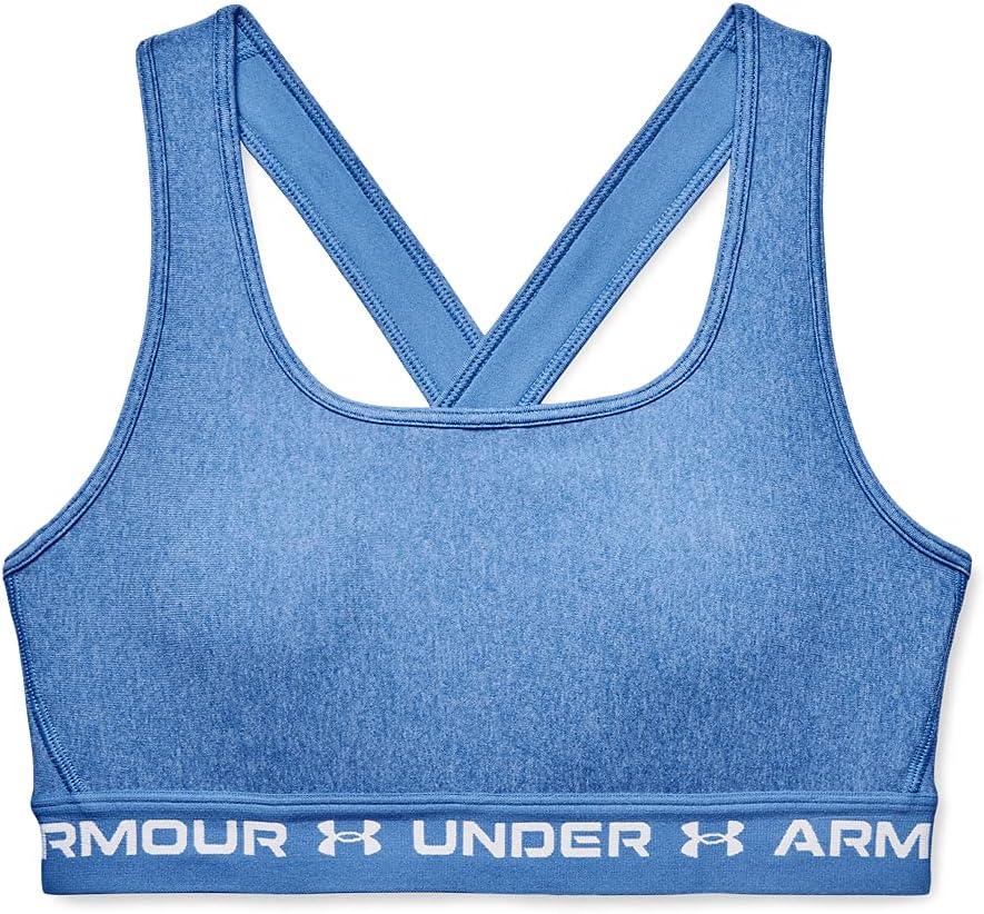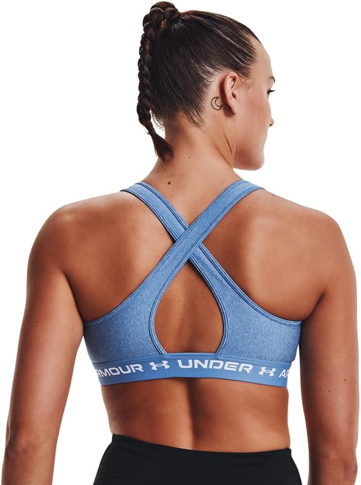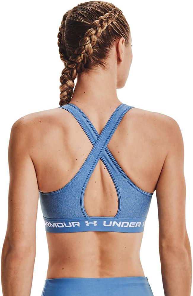 Under Armour Women’s Crossback Mid Impact Sports Bra(River Light Heather (488)/White)