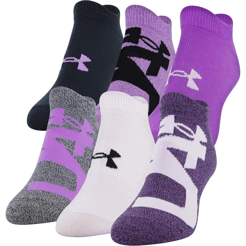 Under Armour womens Essential 2.0 No Show Socks, 6-pairs Discontinued(Exotic Bloom/Crystal Lilac)