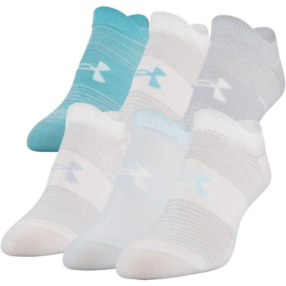 Under Armour womens Essential 2.0 No Show Socks, 6-pairs Discontinued(White/Rift Blue Assorted)