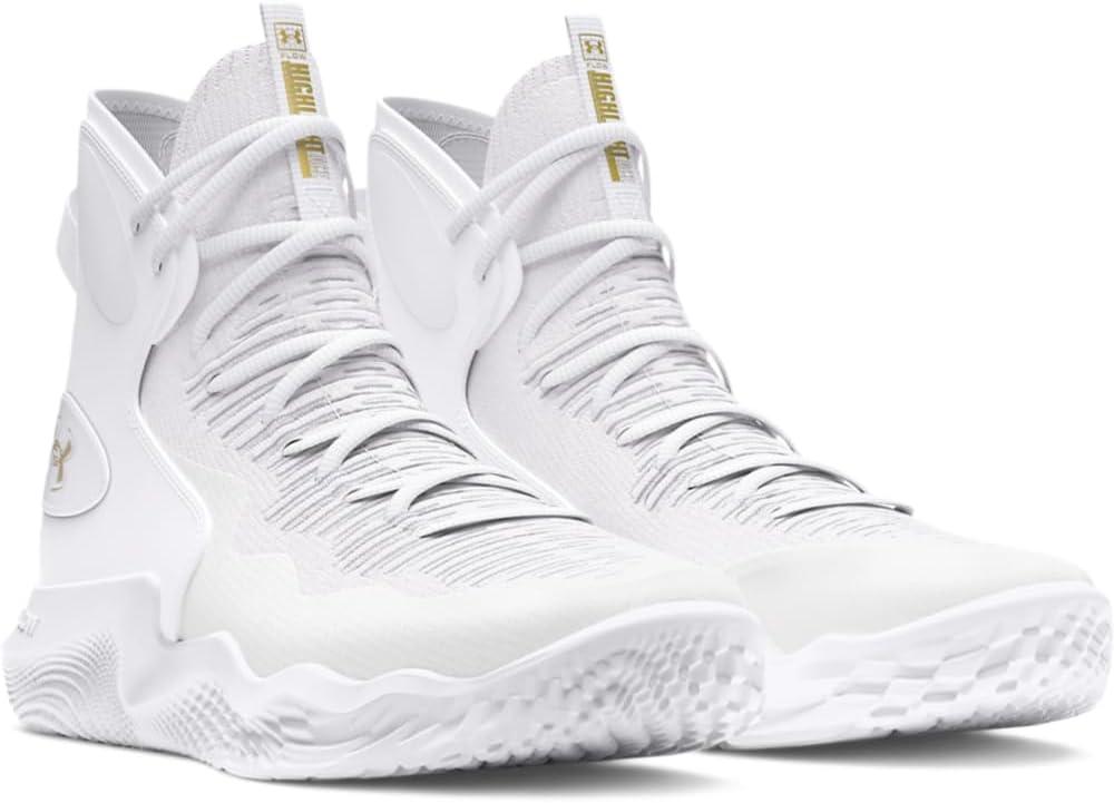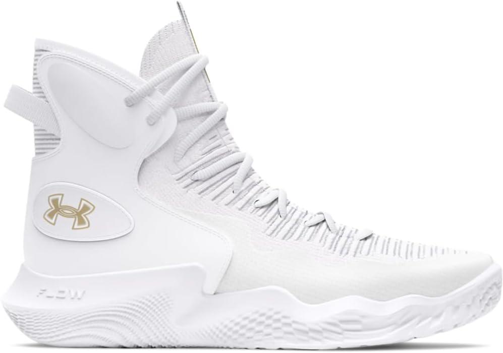 The super-high design gives you extra ankle support, but doesn't feel heavy or restrictive. The UA Flow cushioning is super-light and bouncy, to make you more explosive. Together, you get more power and more precision. UA IntelliKnit upper is breathable & comfortable with dynamic compression for stretch & support where needed. Molded heel & plush collar foam provides enhanced lockdown & comfort. Rubber-printed toe for added abrasion resistance. High-top ankle collar provides increased structure & support for on-court movements. Women's-specific sockliner for added underfoot comfort. Integrated Pebax® shank provides midfoot stability. New UA Flow cushioning technology is super-light, bouncy & provides insane grip. Durable UA Flow outsole provides better court feel so you can cut & stop/start faster than ever before. Lace type: Standard tie.