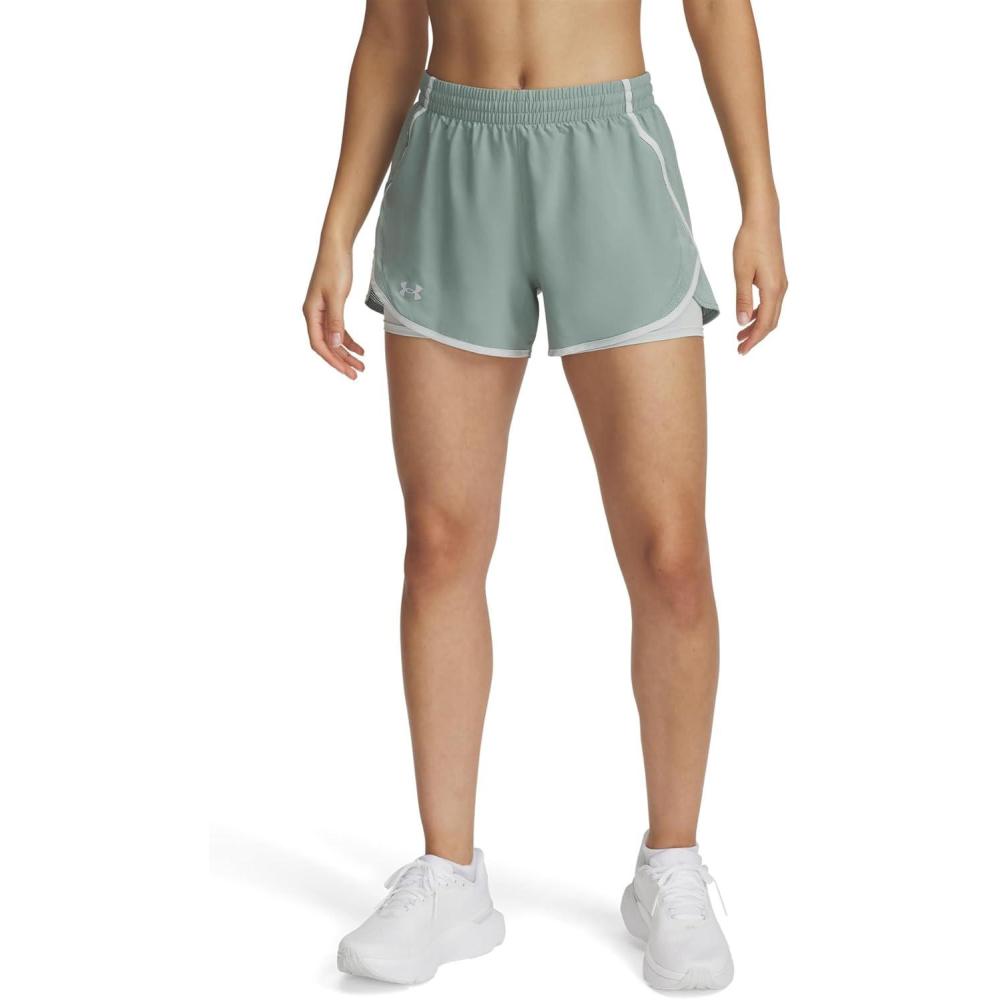 Under Armour Womens Fly by 2-in-1 Shorts((348) Silica Green / Hydro Green / Reflective)