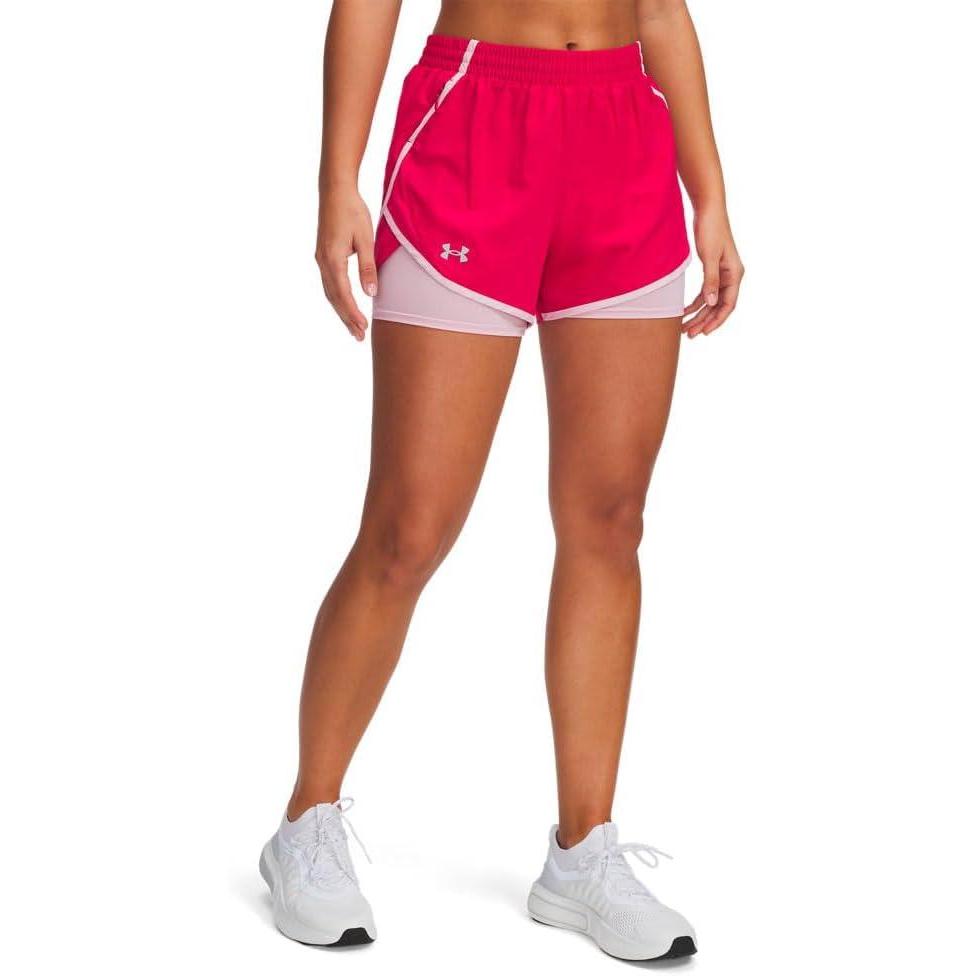 Under Armour Womens Fly by 2-in-1 Shorts((681) Shaded Fuchsia / Prime Pink / Reflective)