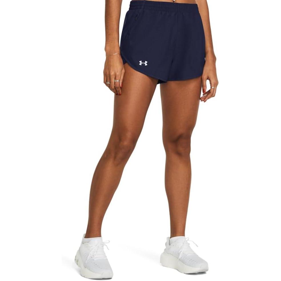 When it comes to these running shorts, we thought of everything: strategic mesh, a key pocket, and reflective hits. So, all you'll be thinking about is going faster, longer. Lightweight woven fabric is comfortable & durable. Material wicks sweat & dries really fast. Super-breathable mesh panels provide enhanced ventilation. Built-in brief for enhanced coverage. Ruched mid-rise waistband with internal drawcord for ultimate comfort. Invisible zip pocket on right side fits headphones, keys or a credit card/ID. Reflective logo. Inseam: 3″. Pockets: Yes. 100% Polyester