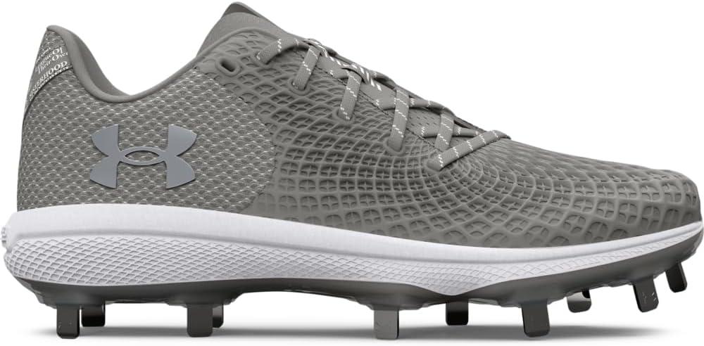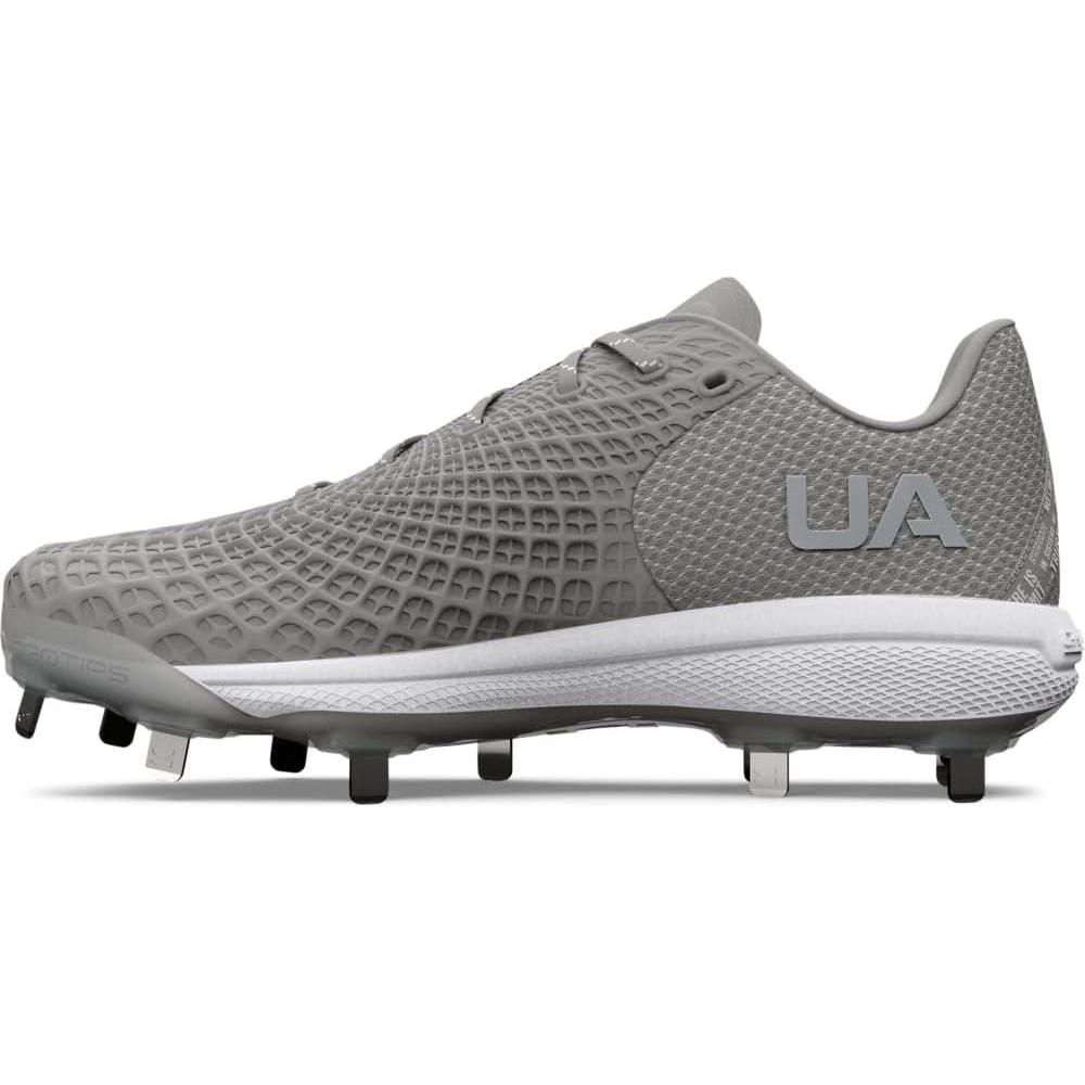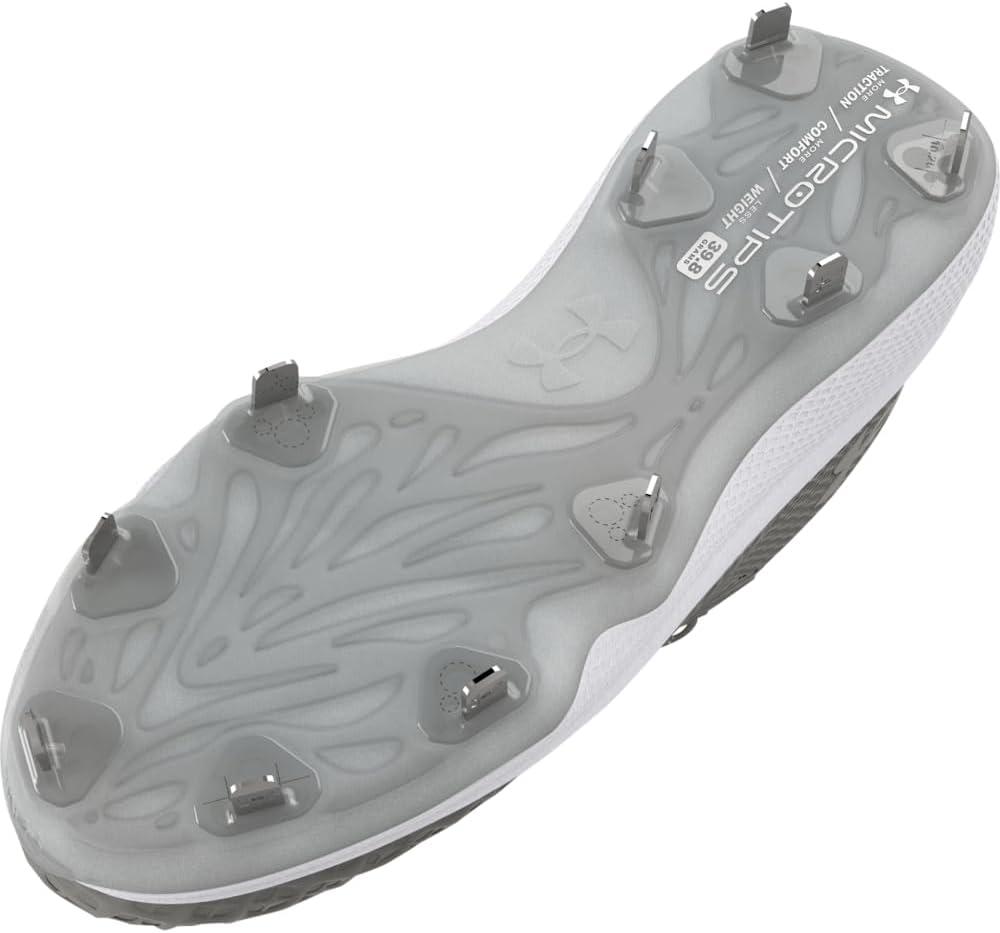 Textile upper with PU coating combines sneaker-like comfort, breathability & ultimate durability. Enhanced fit with plush pocket around the ankle for comfort & support. Lightweight, molded PerfX Pro sockliner molds to your foot for maximum step-in comfort. Charged Cushioning® midsole converts impact into explosive speed & power on the diamond. UA Microtips cleat plate provides more comfort, traction & less weight. 10 strategically placed cleats on perimeter for more points of ground contact to reduce cleat pressure. Weight: 11.18 oz.. Lace type: Standard tie. .