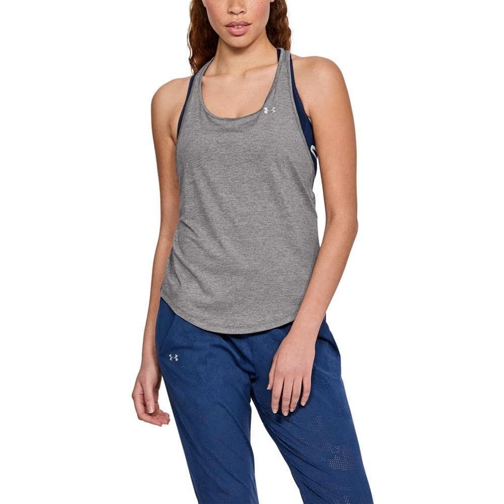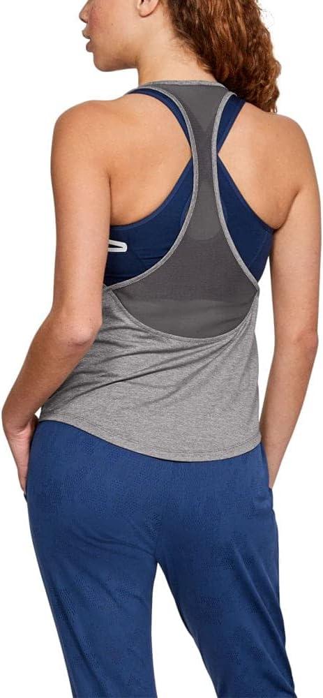 Under Armour Women’s HeatGear Armour Mesh Back Tank(Charcoal Light Heather/ Metallic Silver)
