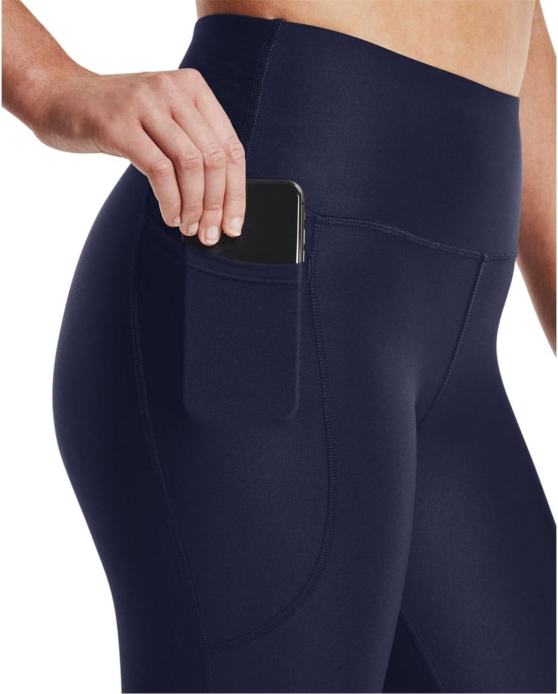 Under Armour Women’s HeatGear High Waisted Pocketed No-Slip Leggings(Midnight Navy (410)/White)