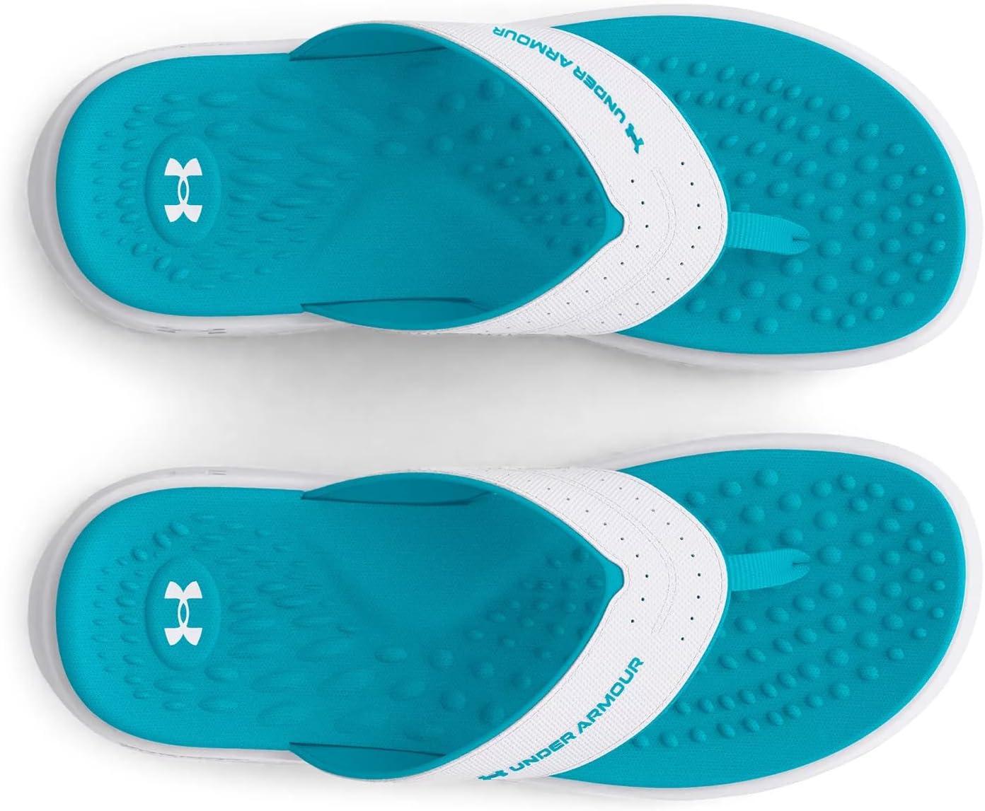 Under Armour Women’s Ignite Pro Marbella Graphic Flip Flop Slide Sandal((101) White/Blue Surf/Blue Surf)
