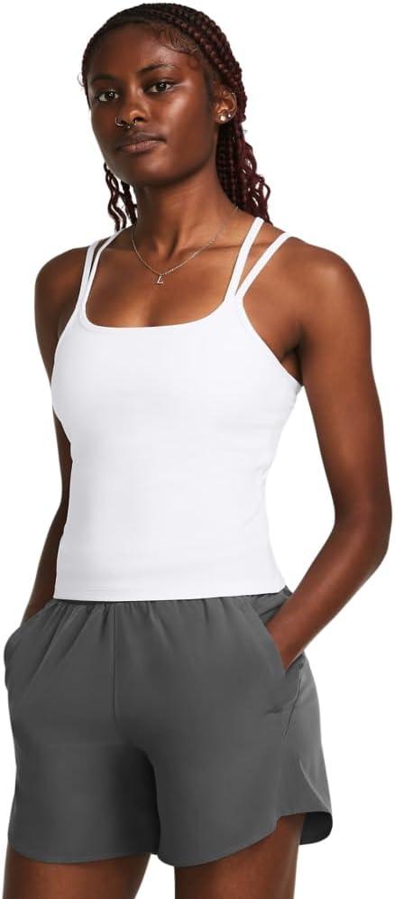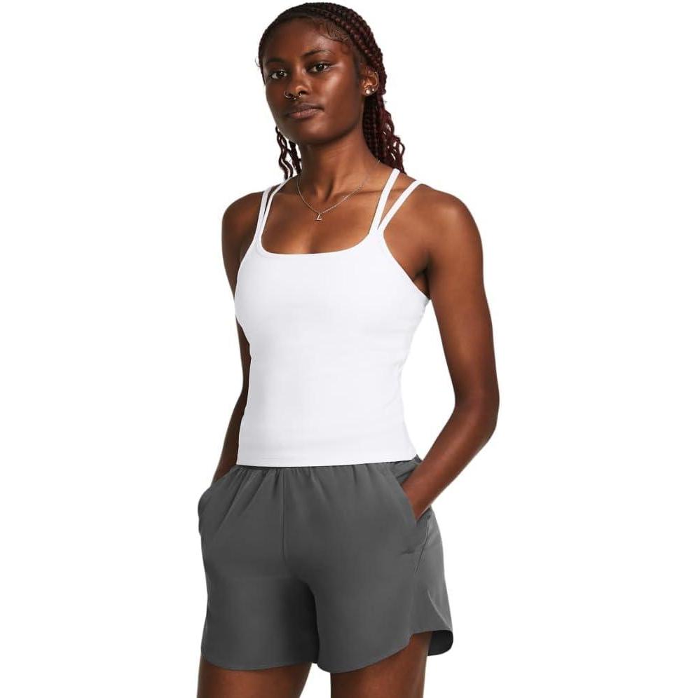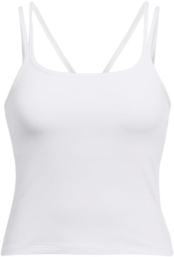 This specially engineered fabric delivers a unique type of softness that can still wick sweat like a champ. It's lightweight, it's breathable, and it's ready to work. Ultra-soft knit fabric is breathable & comfortable. 4-way stretch material moves better in every direction. Built-in shelf bra for added coverage & support. Strappy back detail. 90% Polyester/10% Elastane.