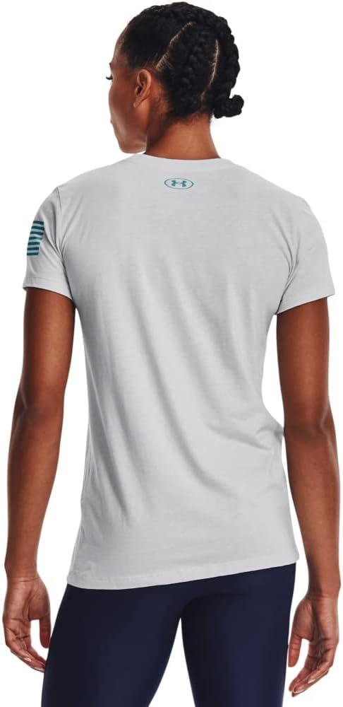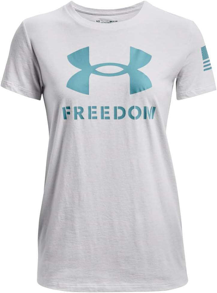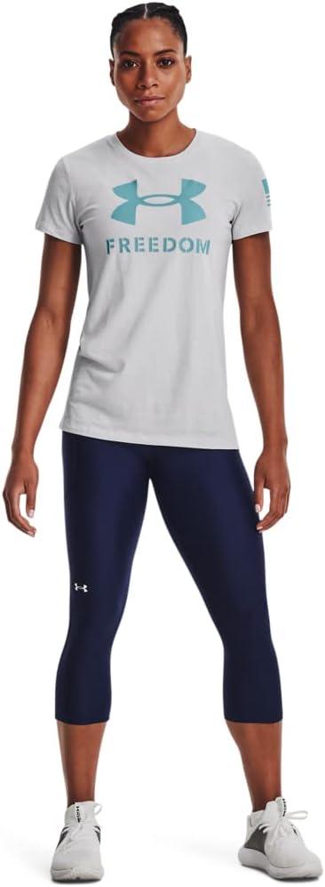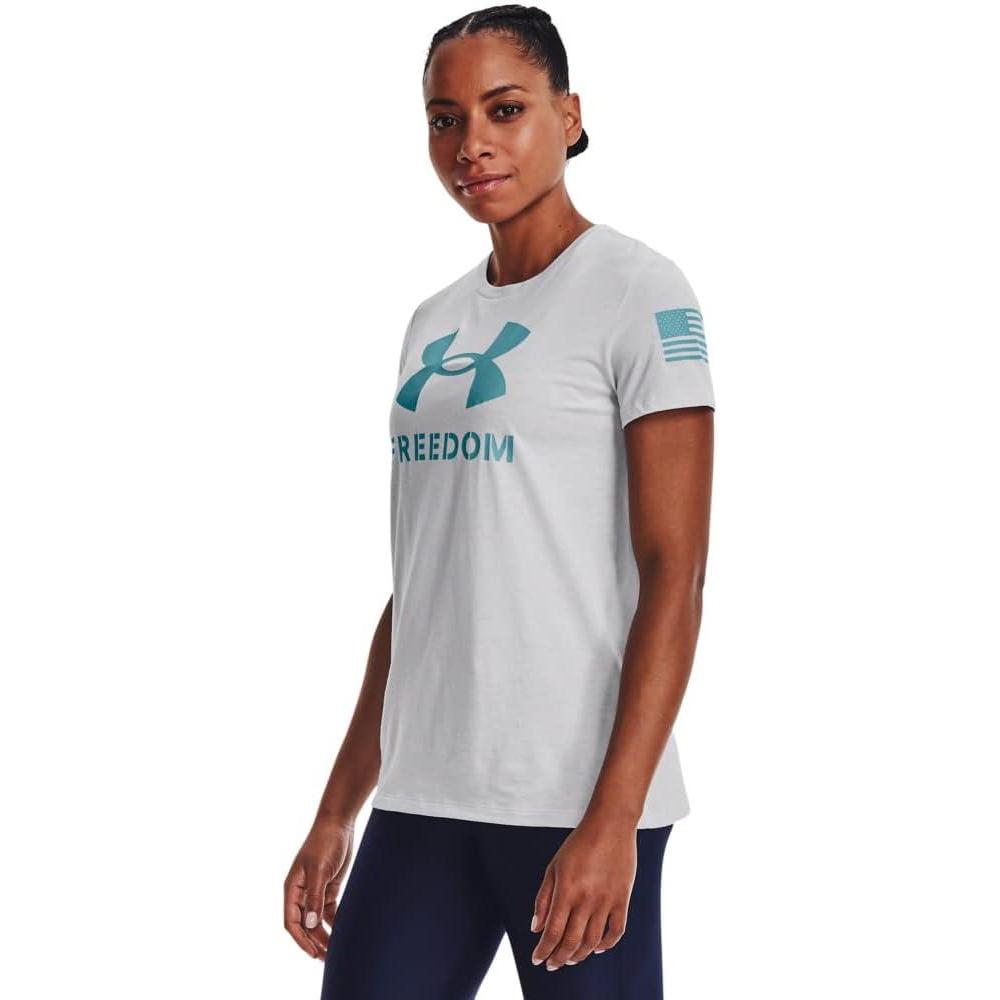 Under Armour Women's New Freedom Logo T-Shirt(Halo Gray (014)/Cloudless Sky)