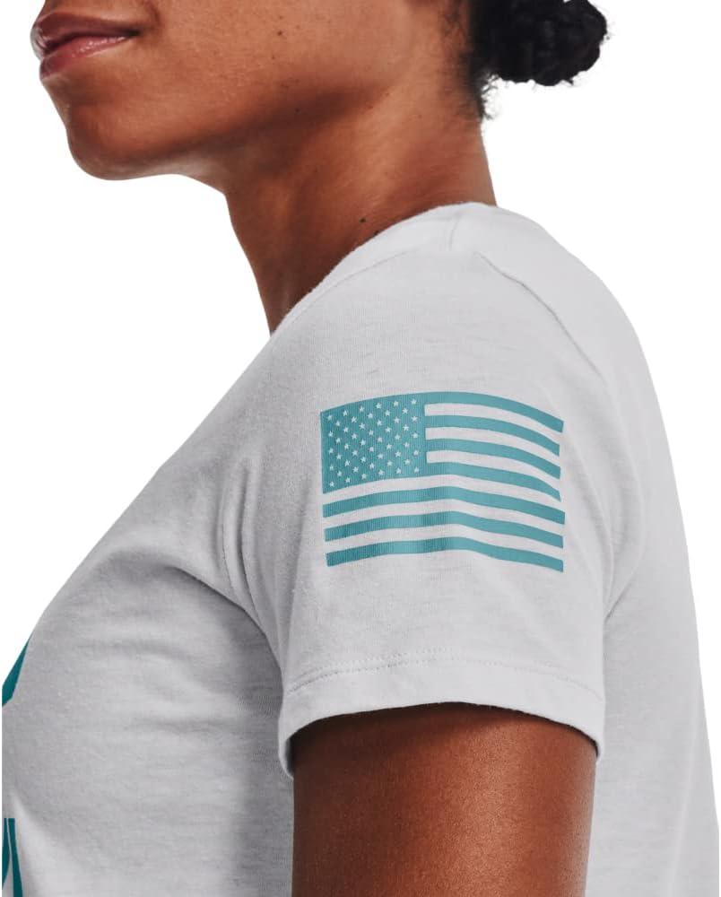 Under Armour Women’s New Freedom Logo T-Shirt(Halo Gray (014)/Cloudless Sky)
