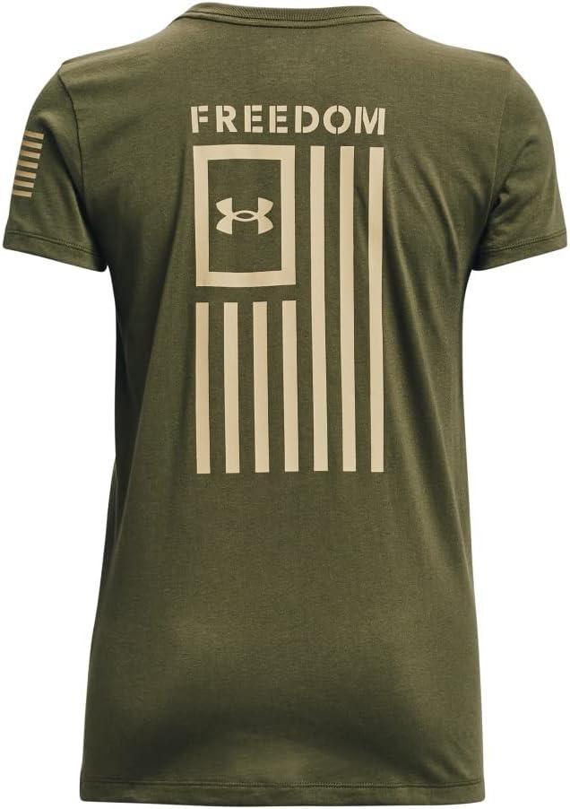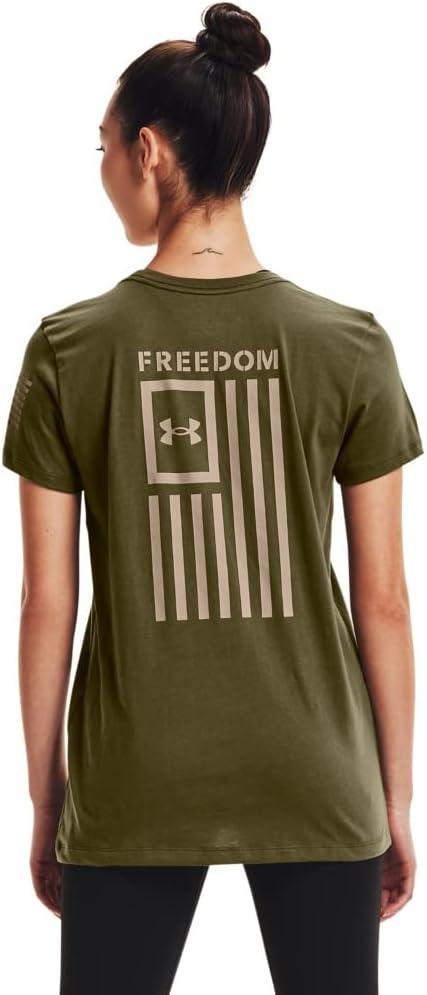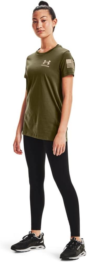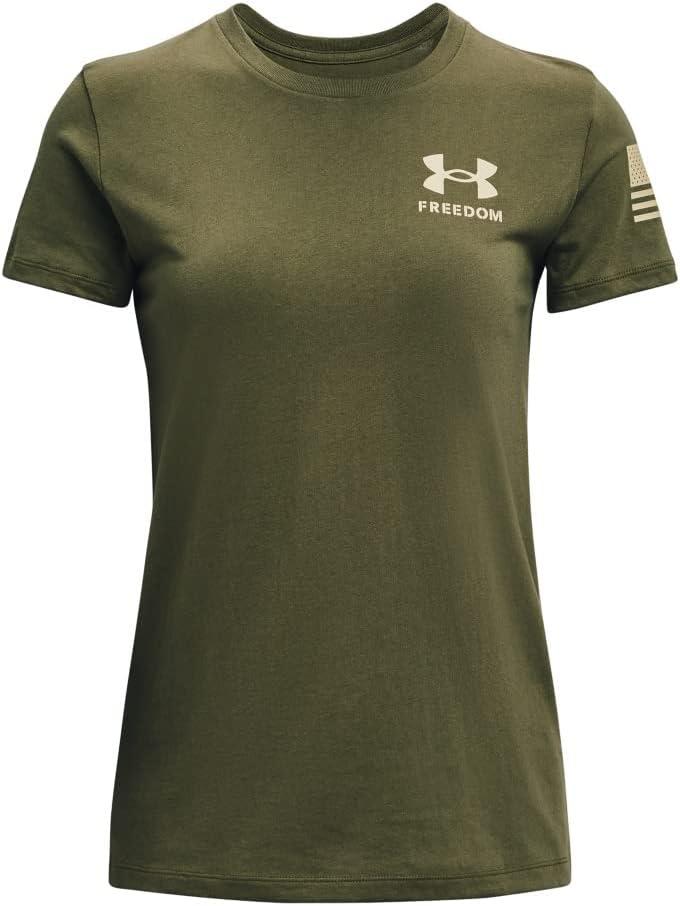 Under Armour Women's New Freedom Logo T-Shirt(Marine Od Green (390)/Desert Sand)
