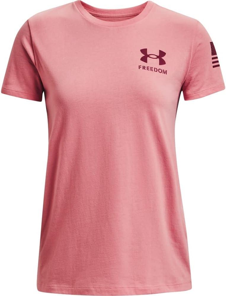Under Armour Women's New Freedom Logo T-Shirt(Pink Clay (663)/League Red)