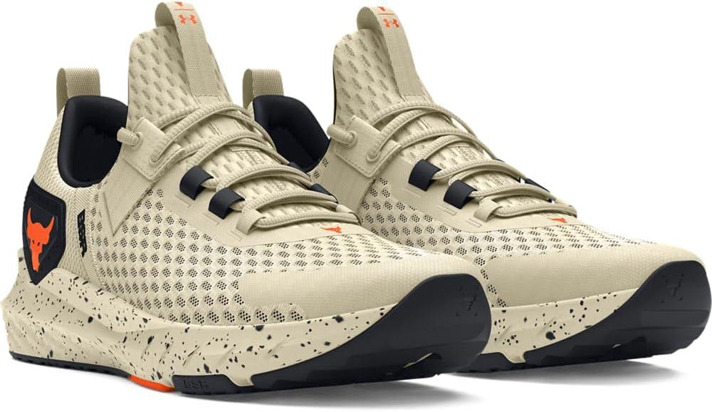 Be the first to review “Under Armour Women’s Project Rock Blood Sweat Respect 4 Sneaker((200) Silt/Black/Team Orange)”