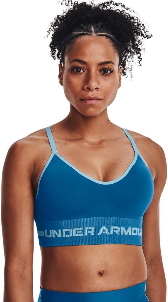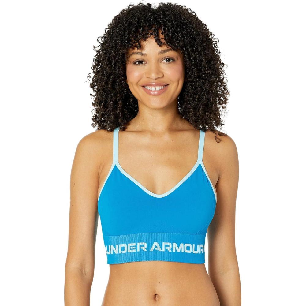 Under Armour Women's Seamless Low Long Bra(Cruise Blue (899)/Electric Tangerine)