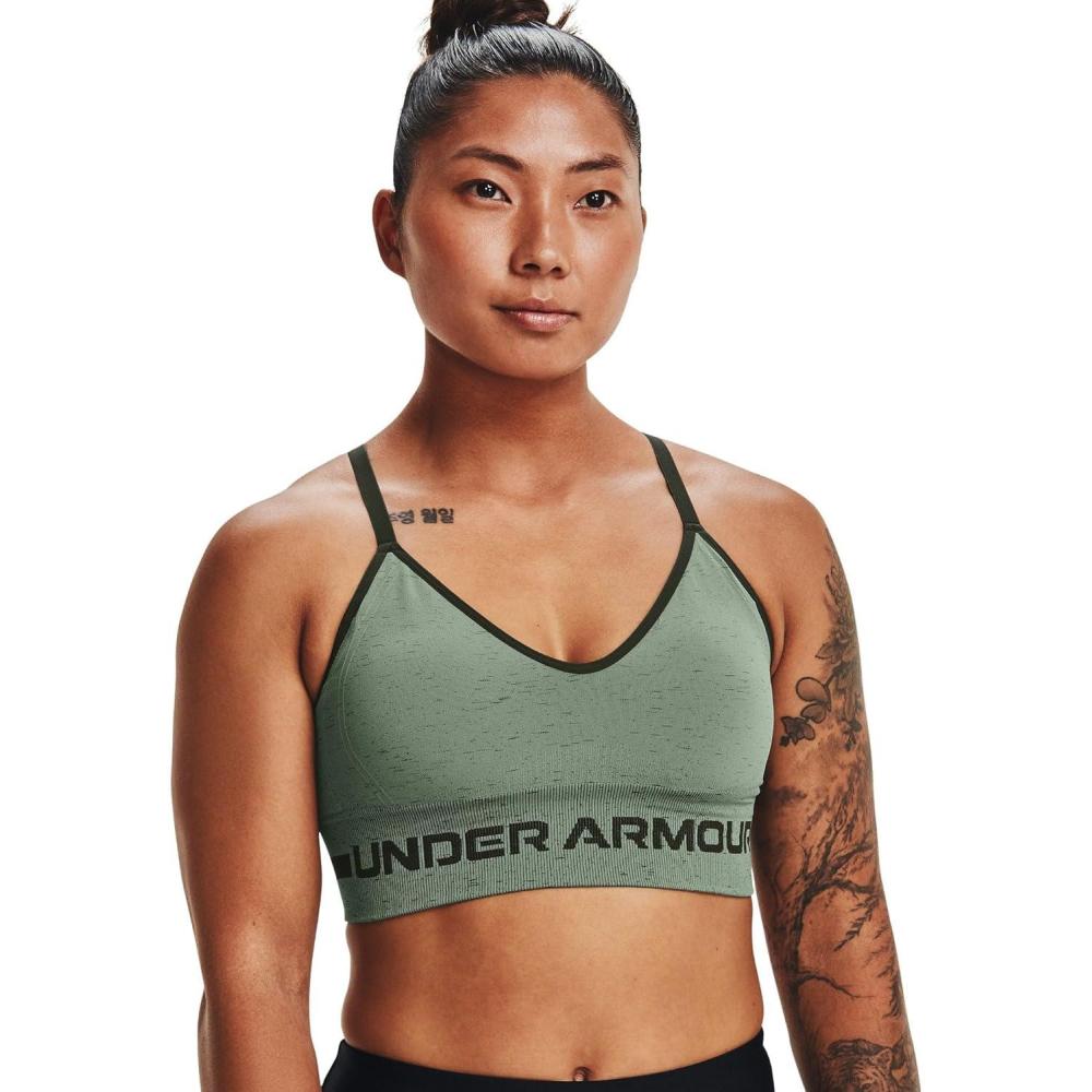 Under Armour Women's Seamless Low Long Bra(Silica Green (348)/Baroque Green)