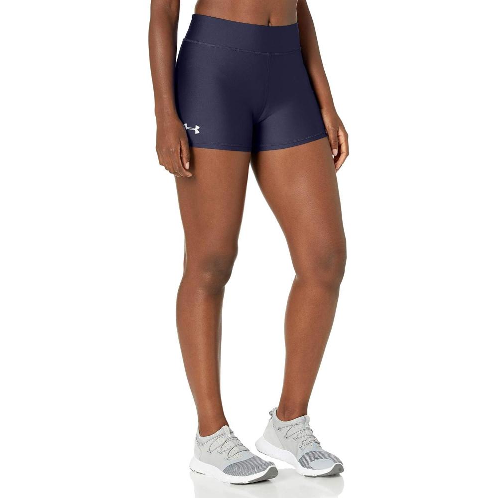 Under Armour Womens Team Shorty Shorts – Super-Light HeatGear Fabric(Midnight Navy (410)/White)