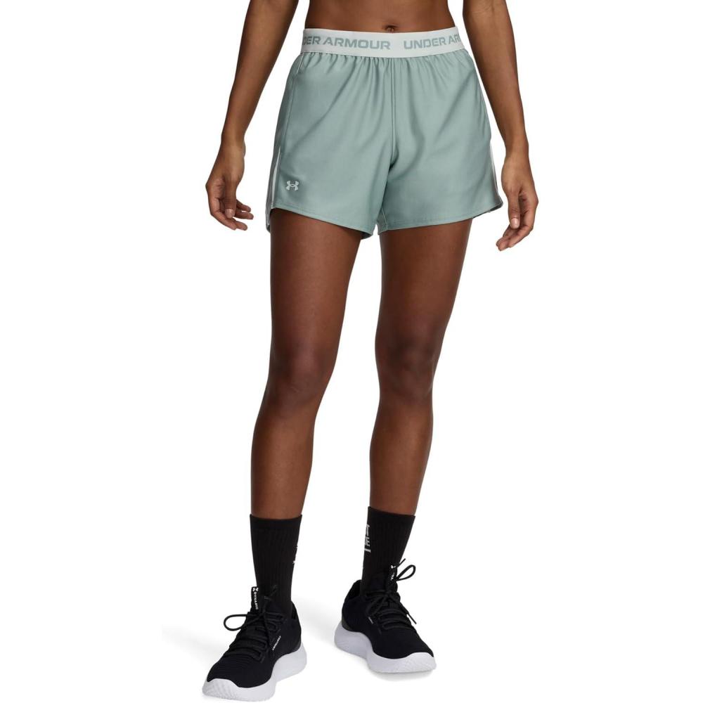 Under Armour Womens Tech Play Up 5 Inch Shorts((348) Silica Green / / Hydro Green)