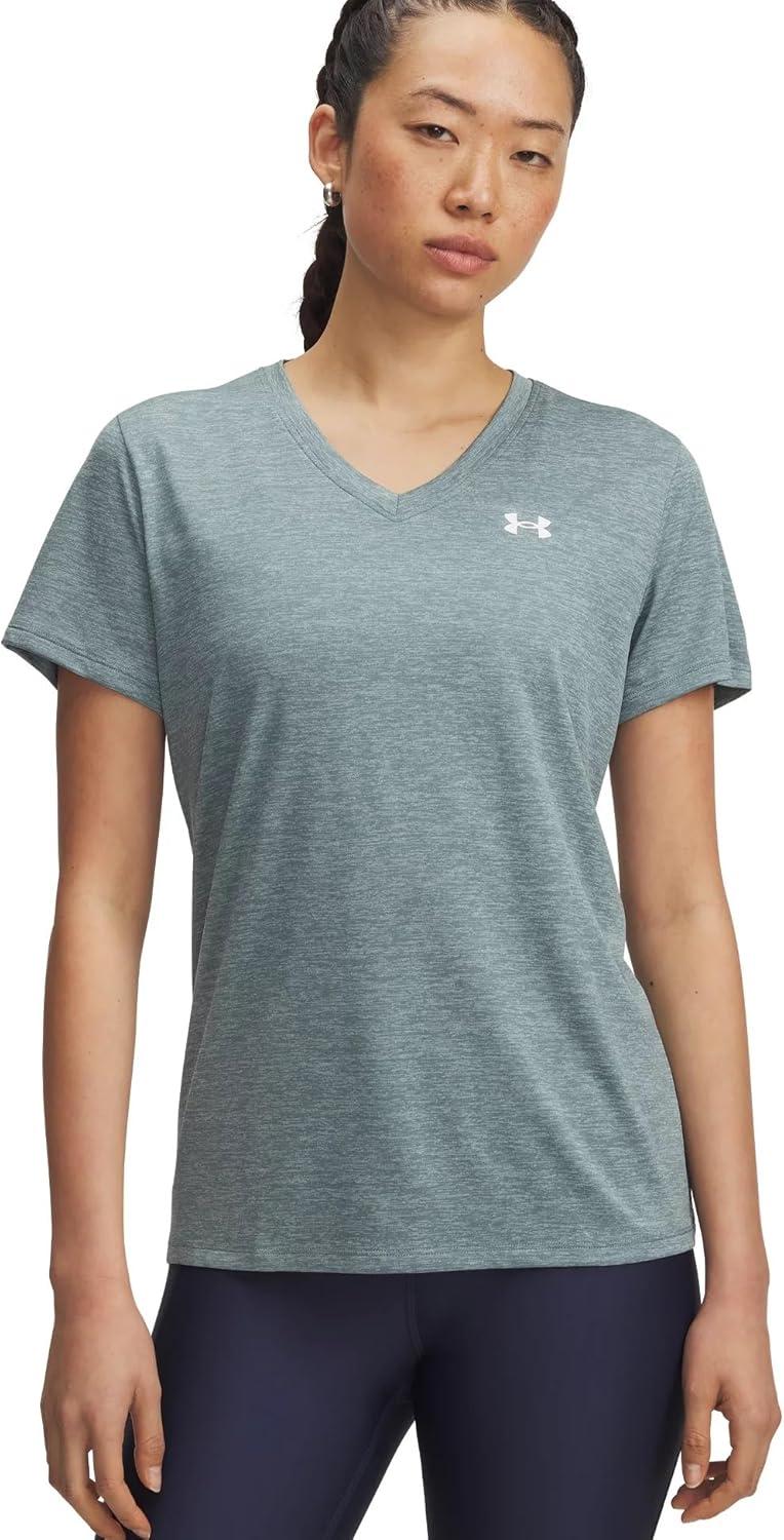 UA Tech™ fabric is quick-drying, ultra-soft & has a more natural feel. Material wicks sweat & dries really fast. V-neck collar. Main body fabric contains at least 30% recycled polyester, excluding trims & embellishments. All-over twist effect.