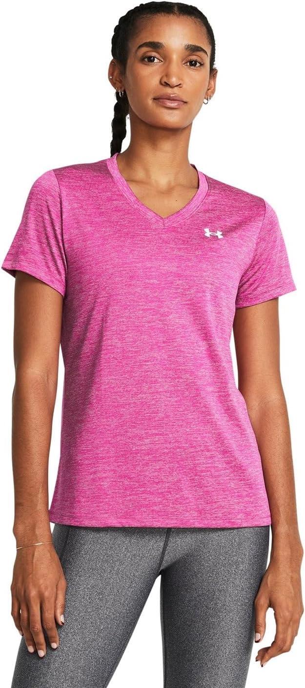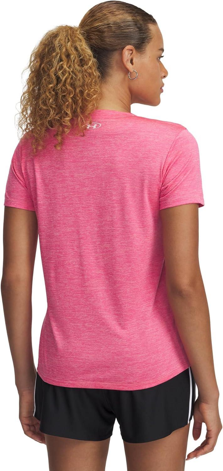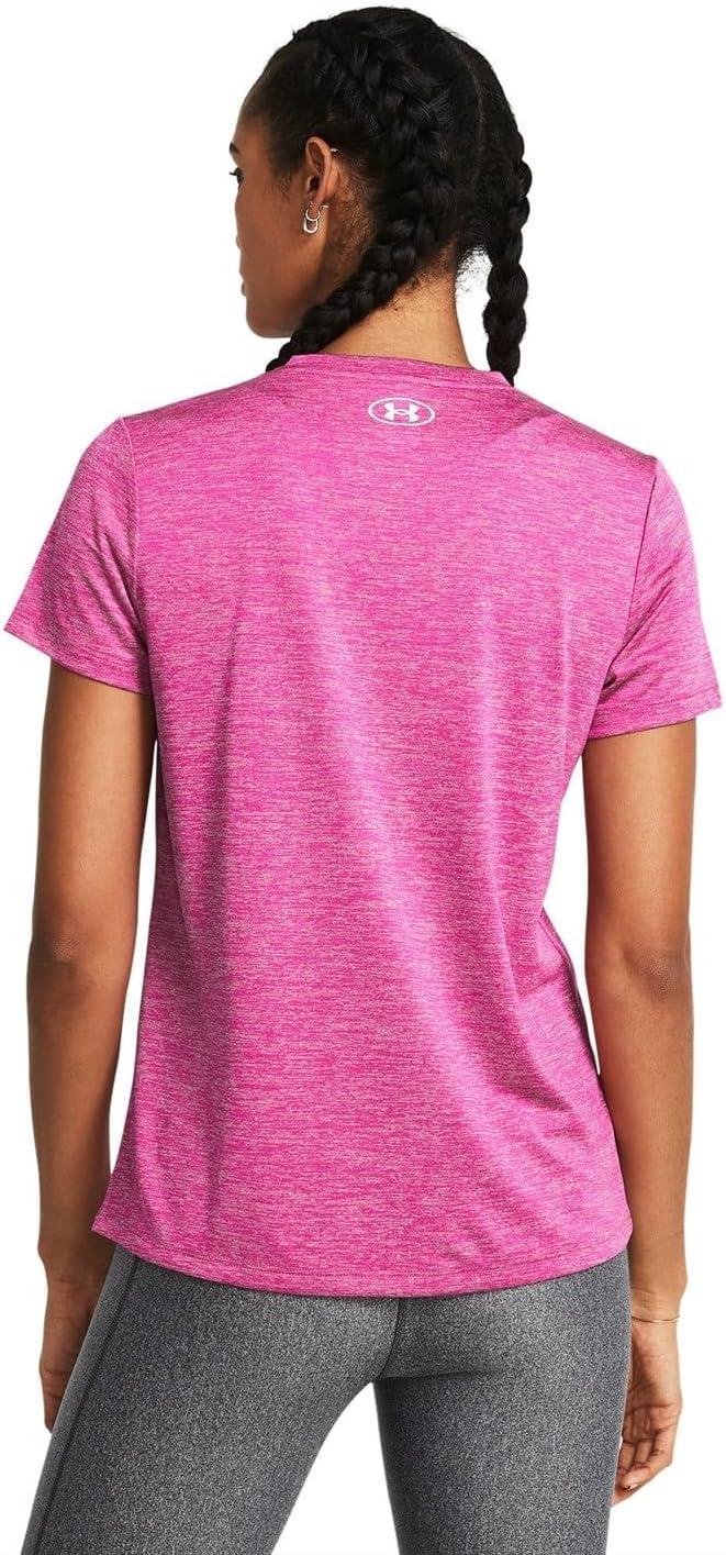 Under Armour Women’s Tech Twist Short Sleeve V Neck((652) Rebel Pink / Pink Elixir / White)