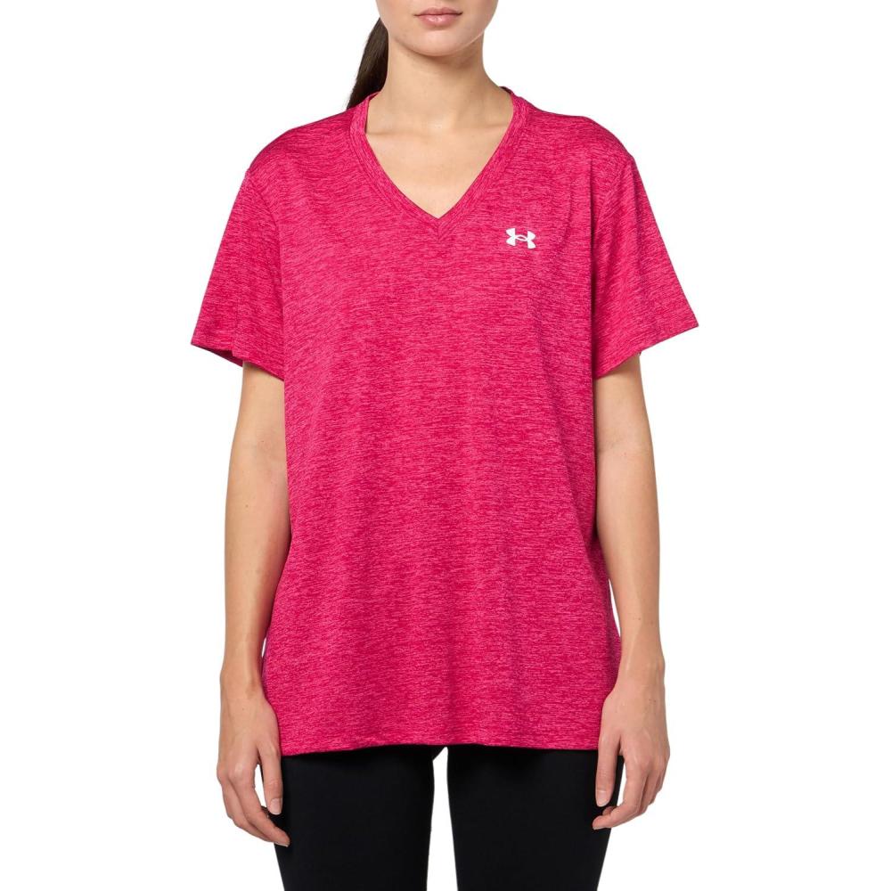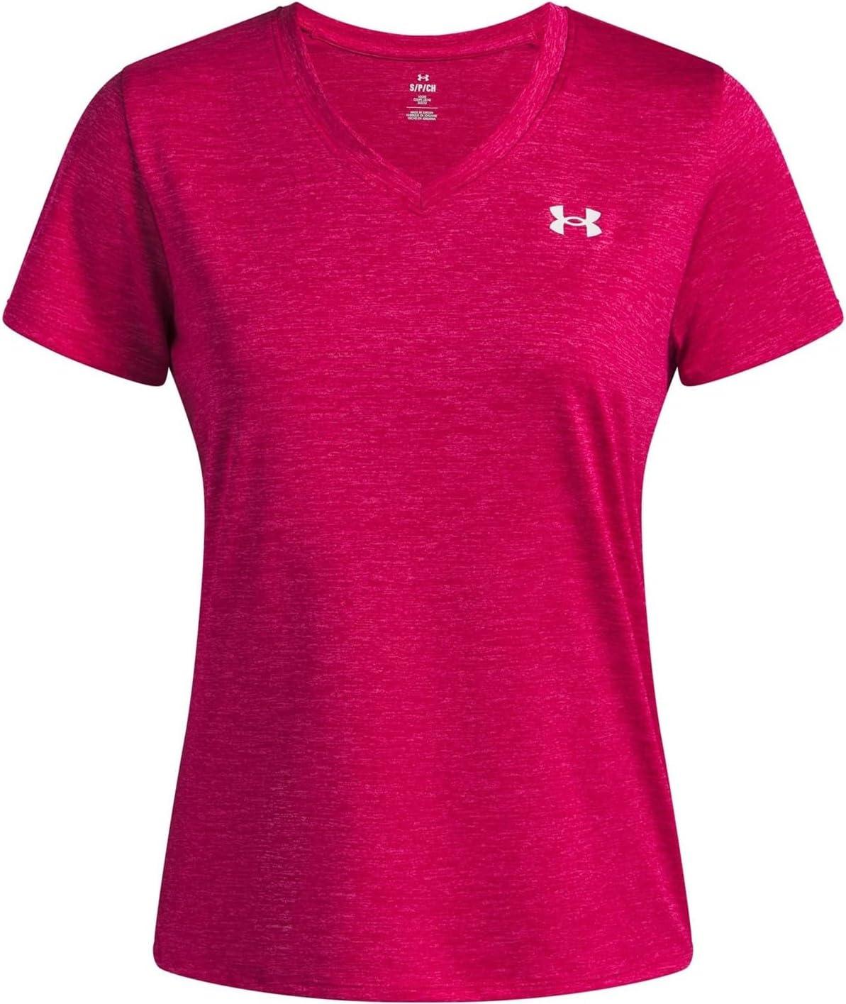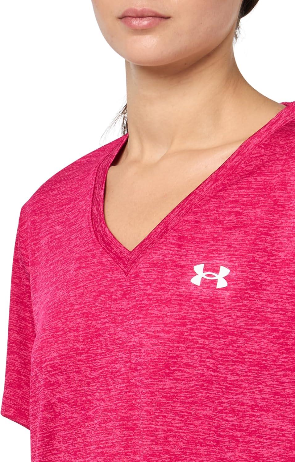 Under Armour Women’s Tech Twist Short Sleeve V Neck((681) Shaded Fuchsia / / White)