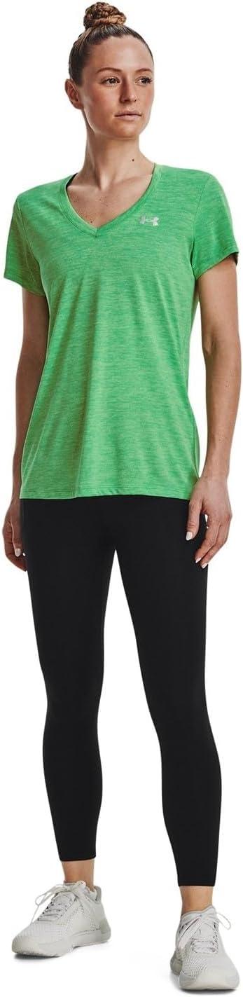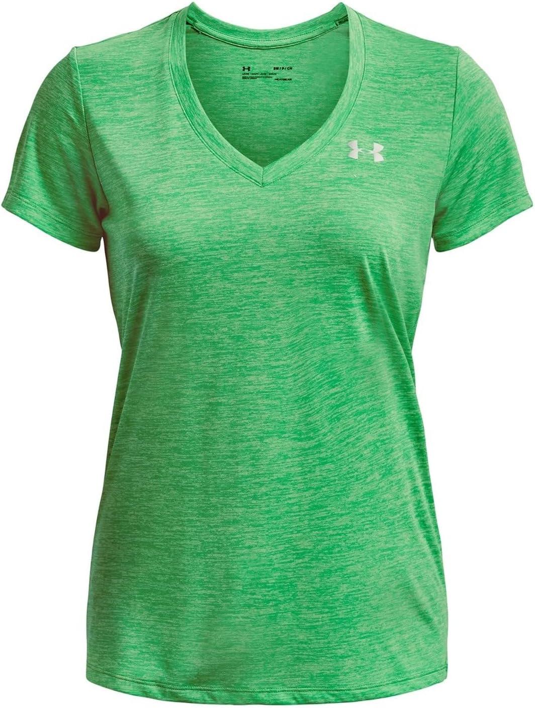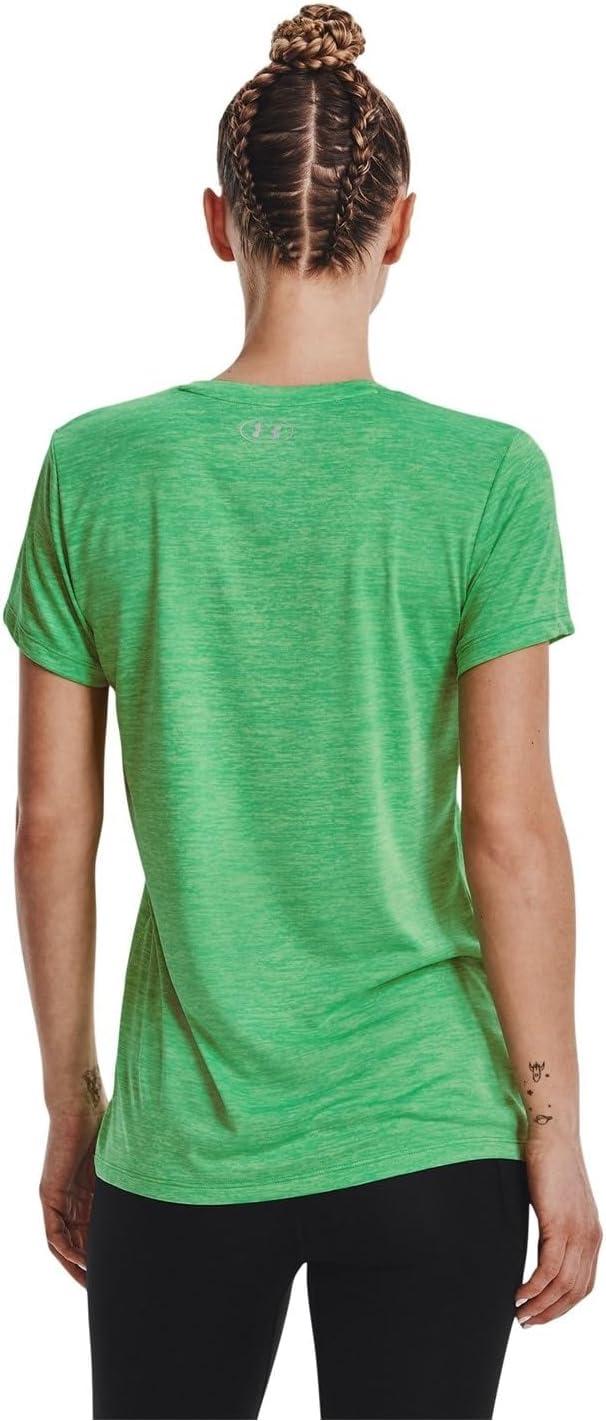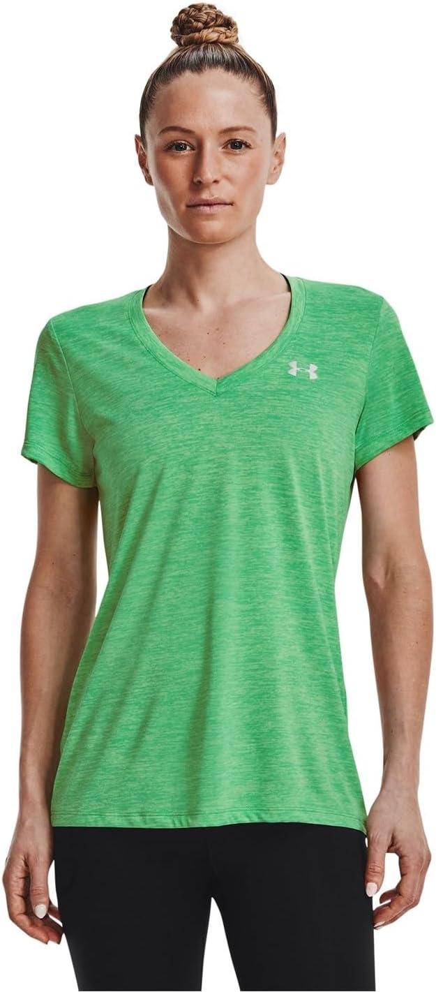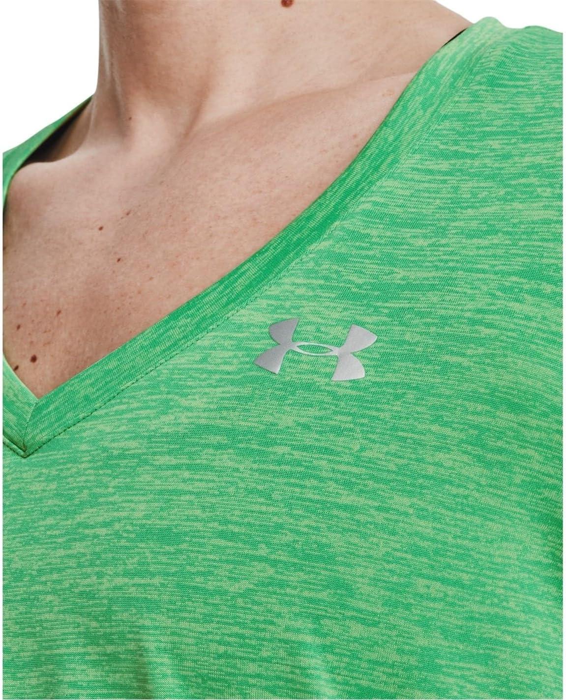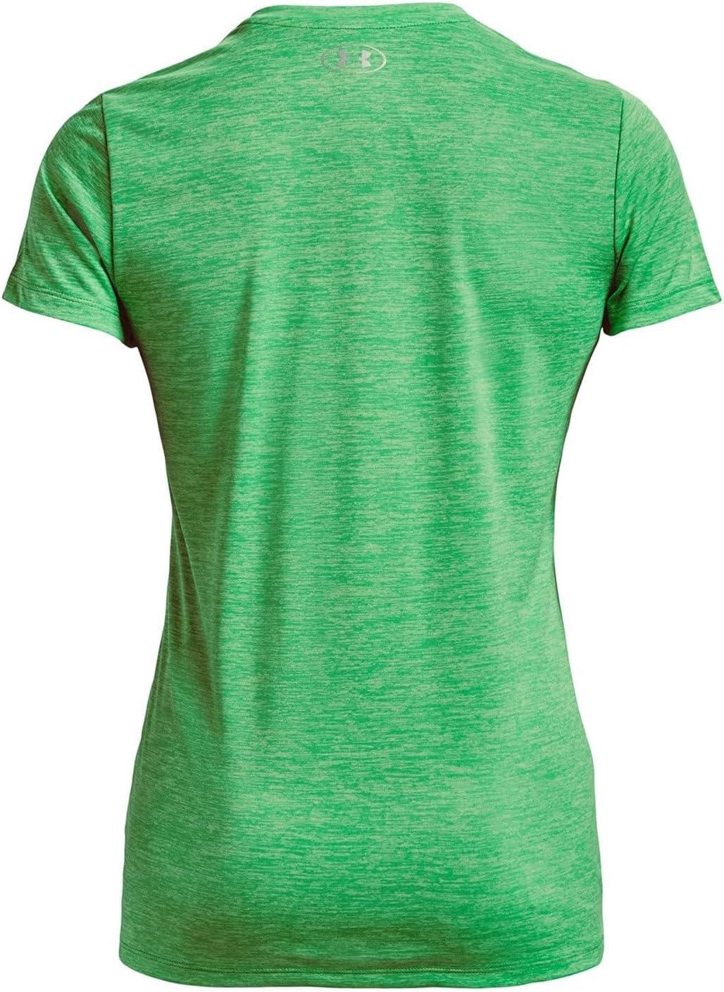 Under Armour Womens Tech V-Neck Twist Short-Sleeve T-Shirt((328) Extreme Green / Phosphor Green / Metallic Silver)