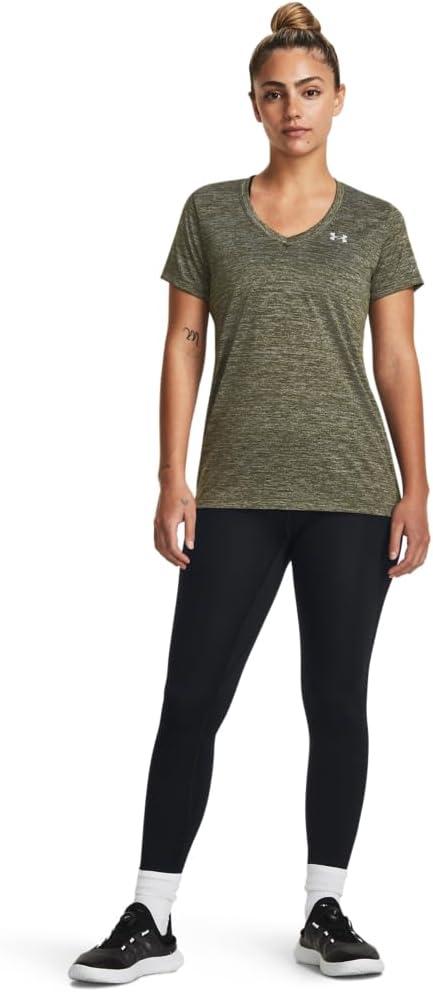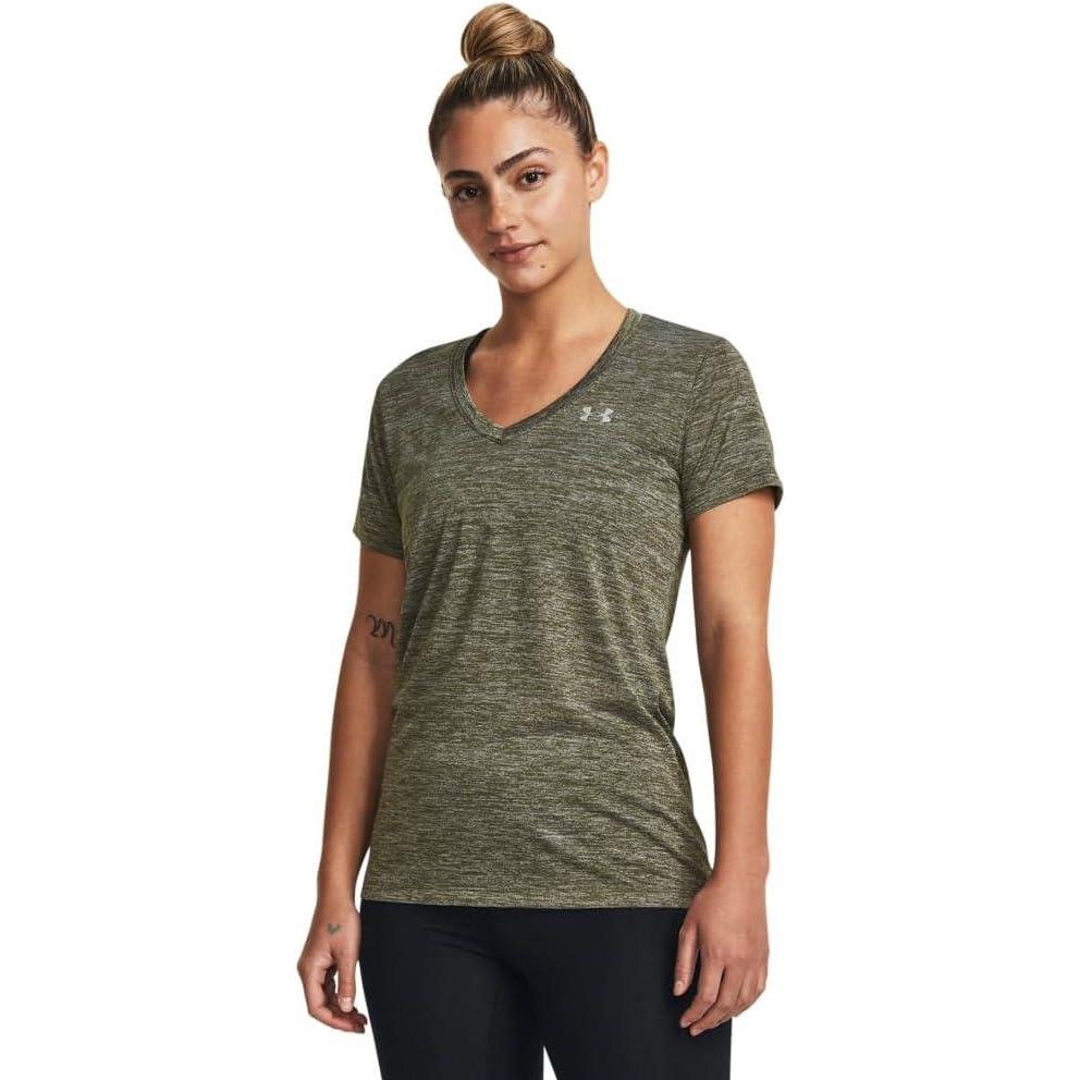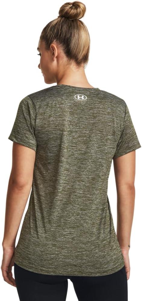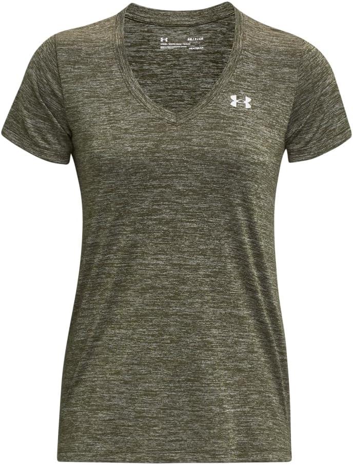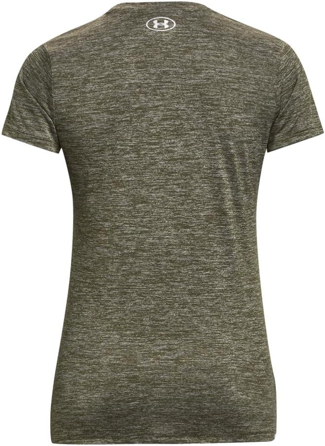 Under Armour Womens Tech V-Neck Twist Short-Sleeve T-Shirt((390) Marine Od Green / White / Metallic Silver)