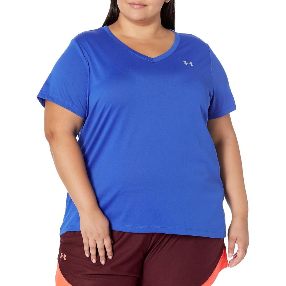Under Armour Womens Tech V-Neck Twist Short-Sleeve T-Shirt((400) Team Royal / / Metallic Silver)
