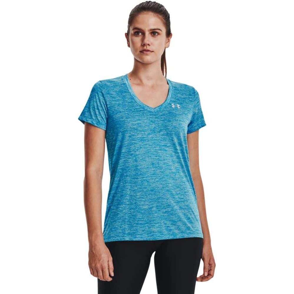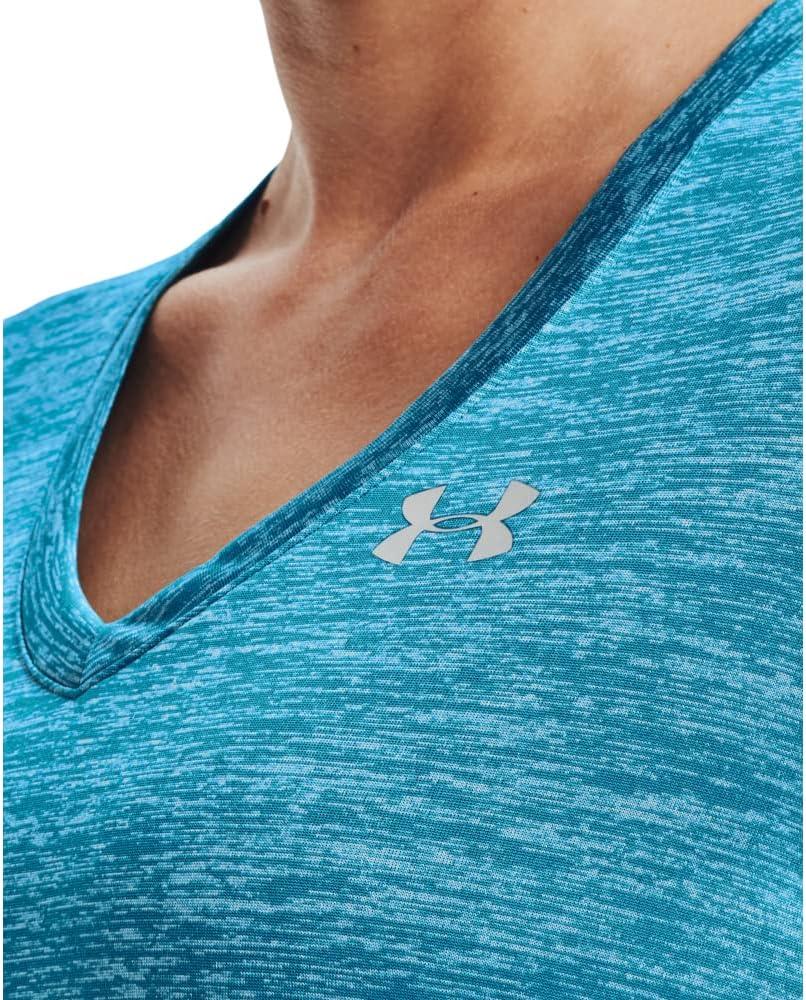 Under Armour Womens Tech V-Neck Twist Short-Sleeve T-Shirt((422) Capri / Fuse Teal / Metallic Silver)