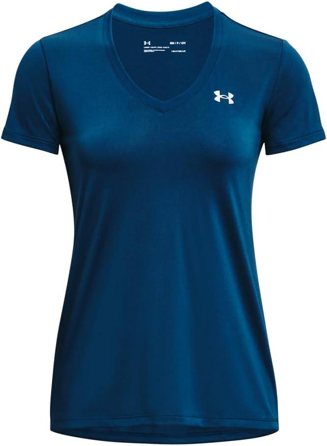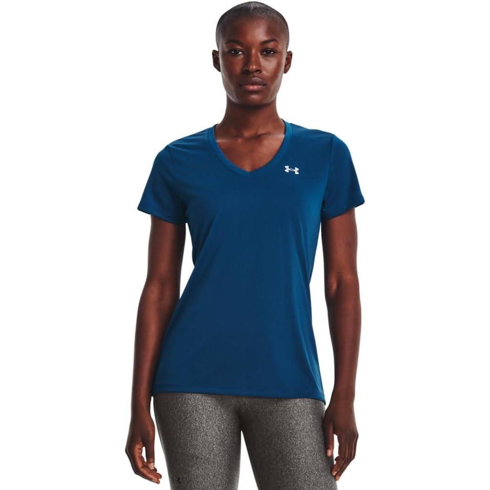 Under Armour Womens Tech V-Neck Twist Short-Sleeve T-Shirt((426) Varsity Blue / / Metallic Silver)