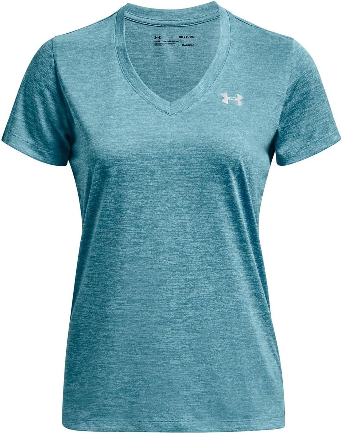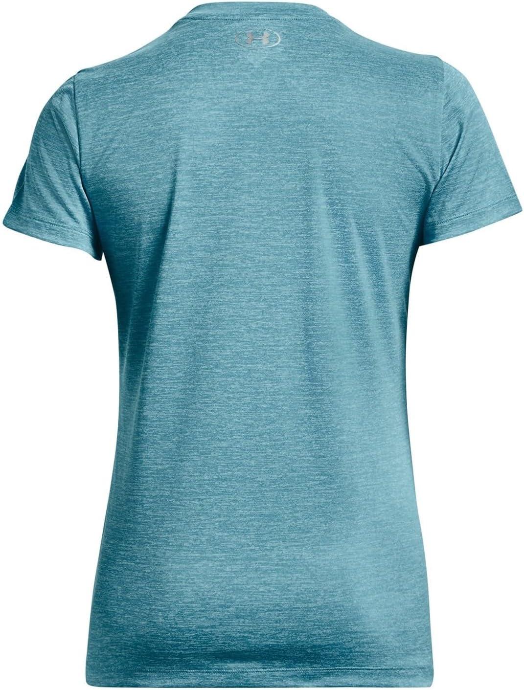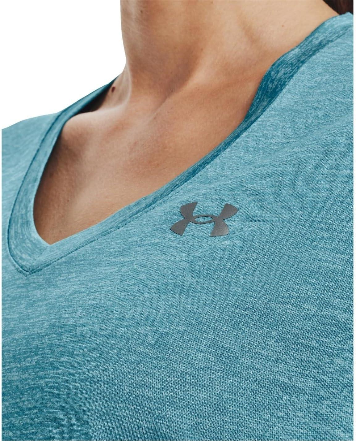 Under Armour Womens Tech V-Neck Twist Short-Sleeve T-Shirt((433) Glacier Blue / White / Metallic Silver)