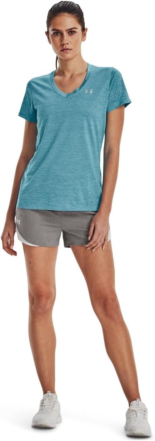 imageUnder Armour Womens Tech VNeck Twist ShortSleeve TShirt433 Glacier Blue  White  Metallic Silver