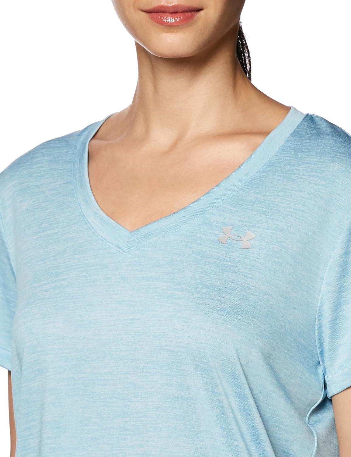 The Under Armour women's UA Twisted Tech V-neck T-shirt is loose, light, and it keeps you cool. It's part of our original go-to training gear, and it's everything you need. UA Tech™ fabric is quick-drying, ultra-soft & has a more natural feel. Material wicks sweat & dries really fast. 4-way stretch construction moves better in every direction. Deep V-neck collar. Allover twist effect. Loose:Fuller cut for complete comfort. 100% Polyester.