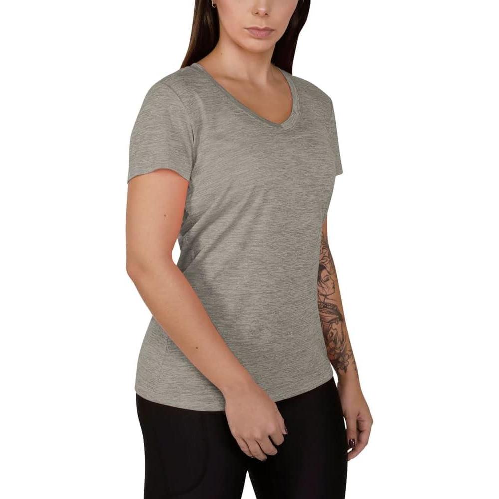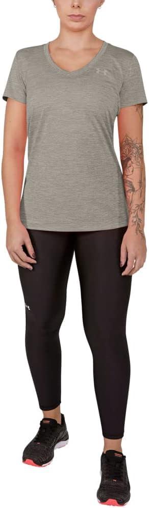 Under Armour Womens Tech V-Neck Twist Short-Sleeve T-Shirt((558) Tin / Ghost Gray / Metallic Silver)