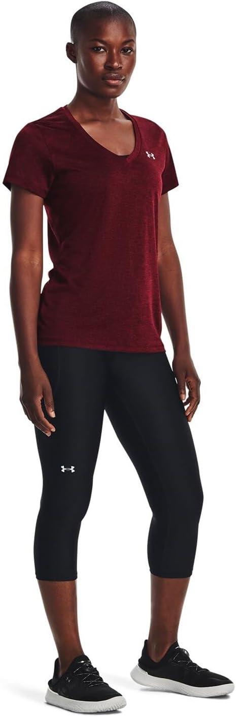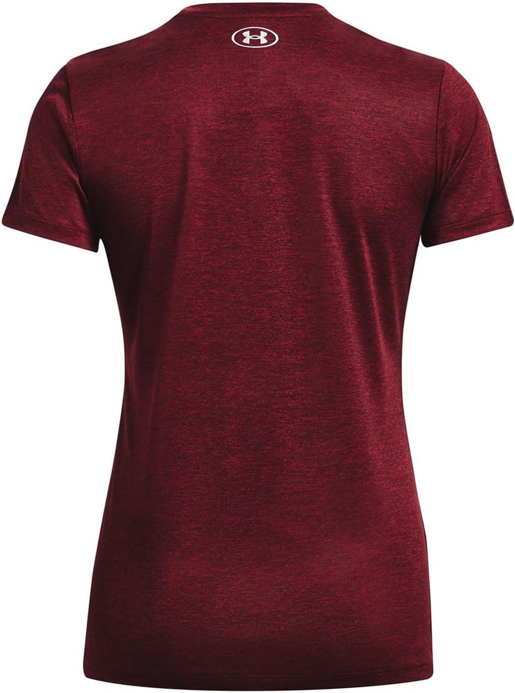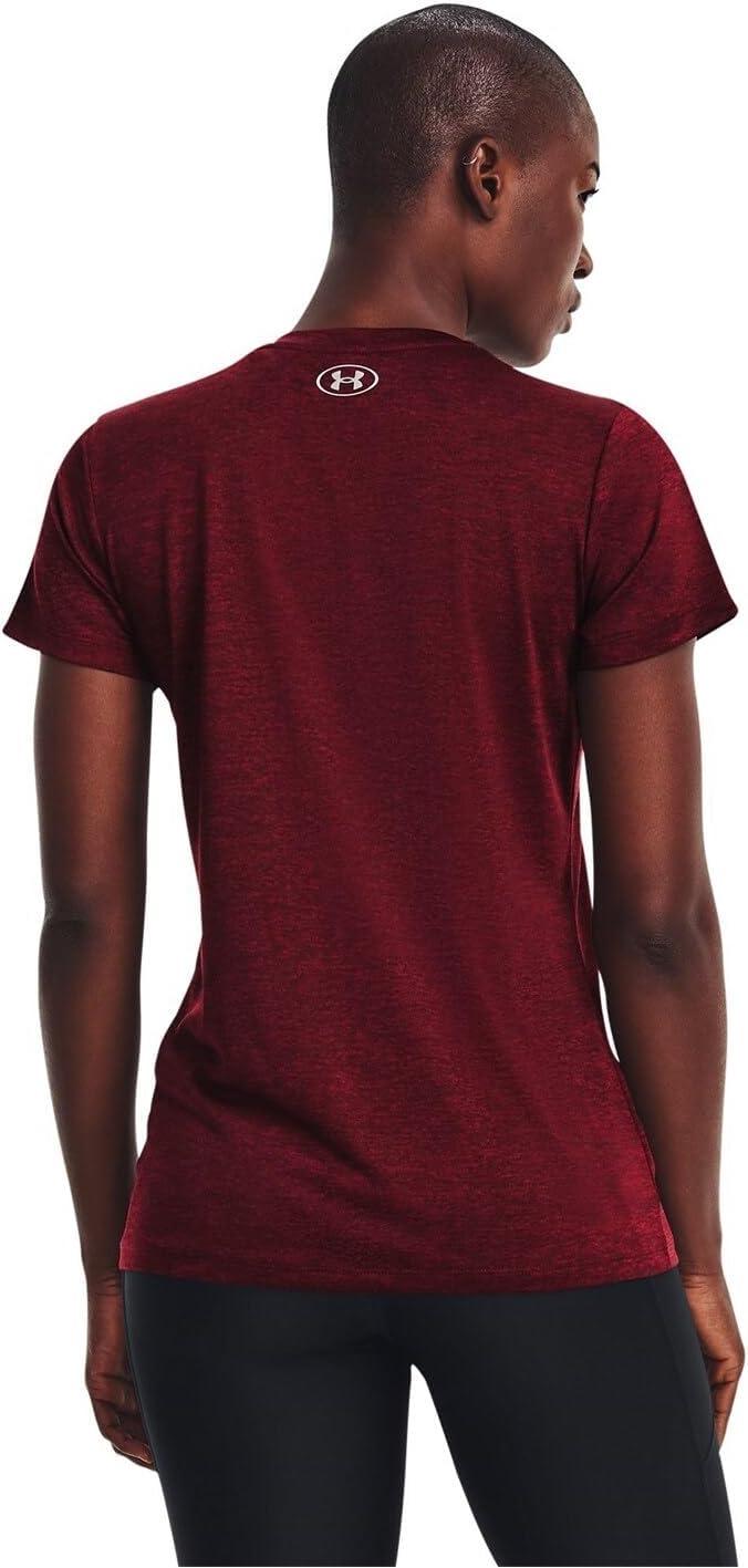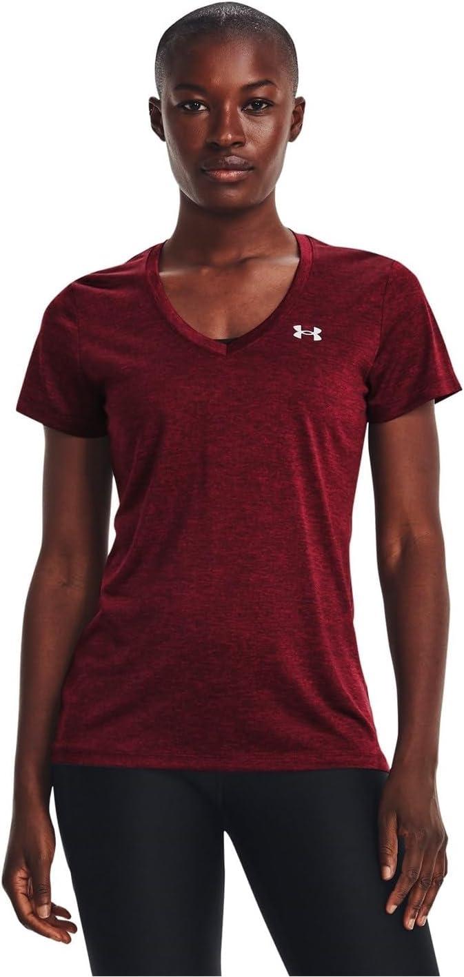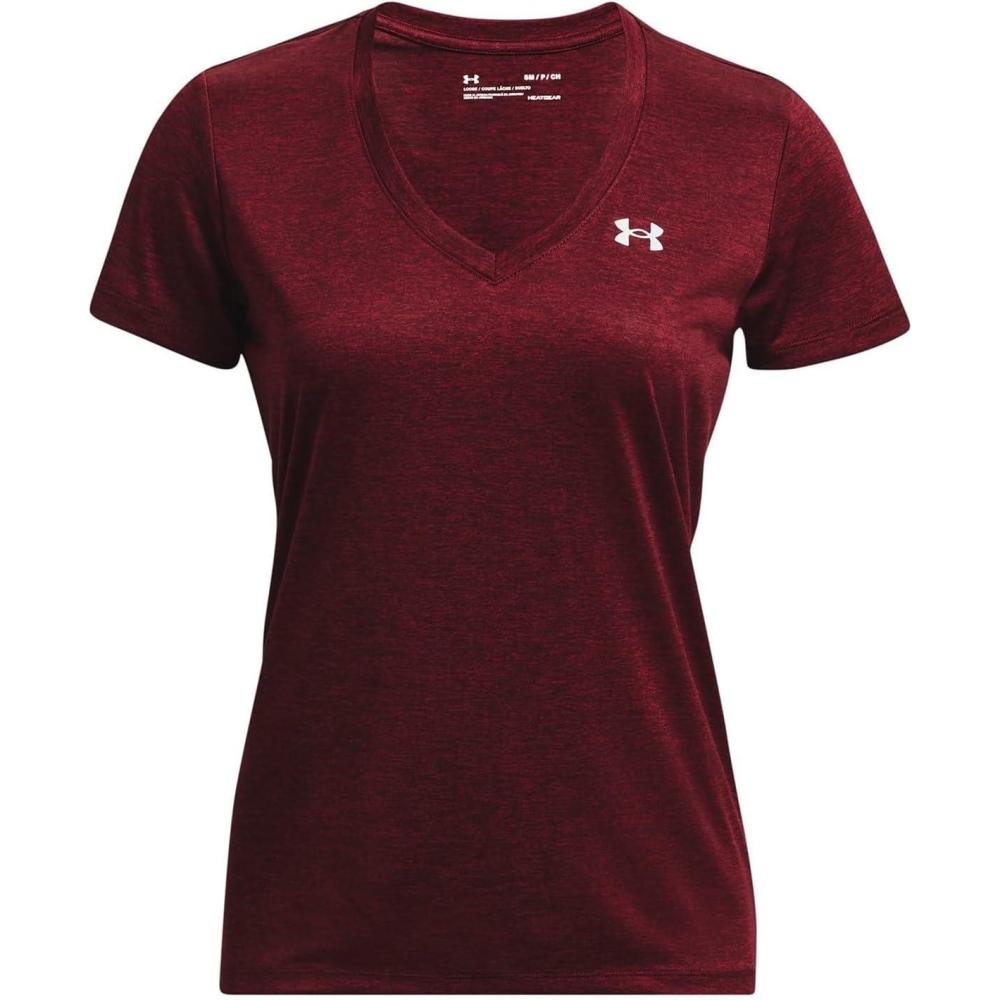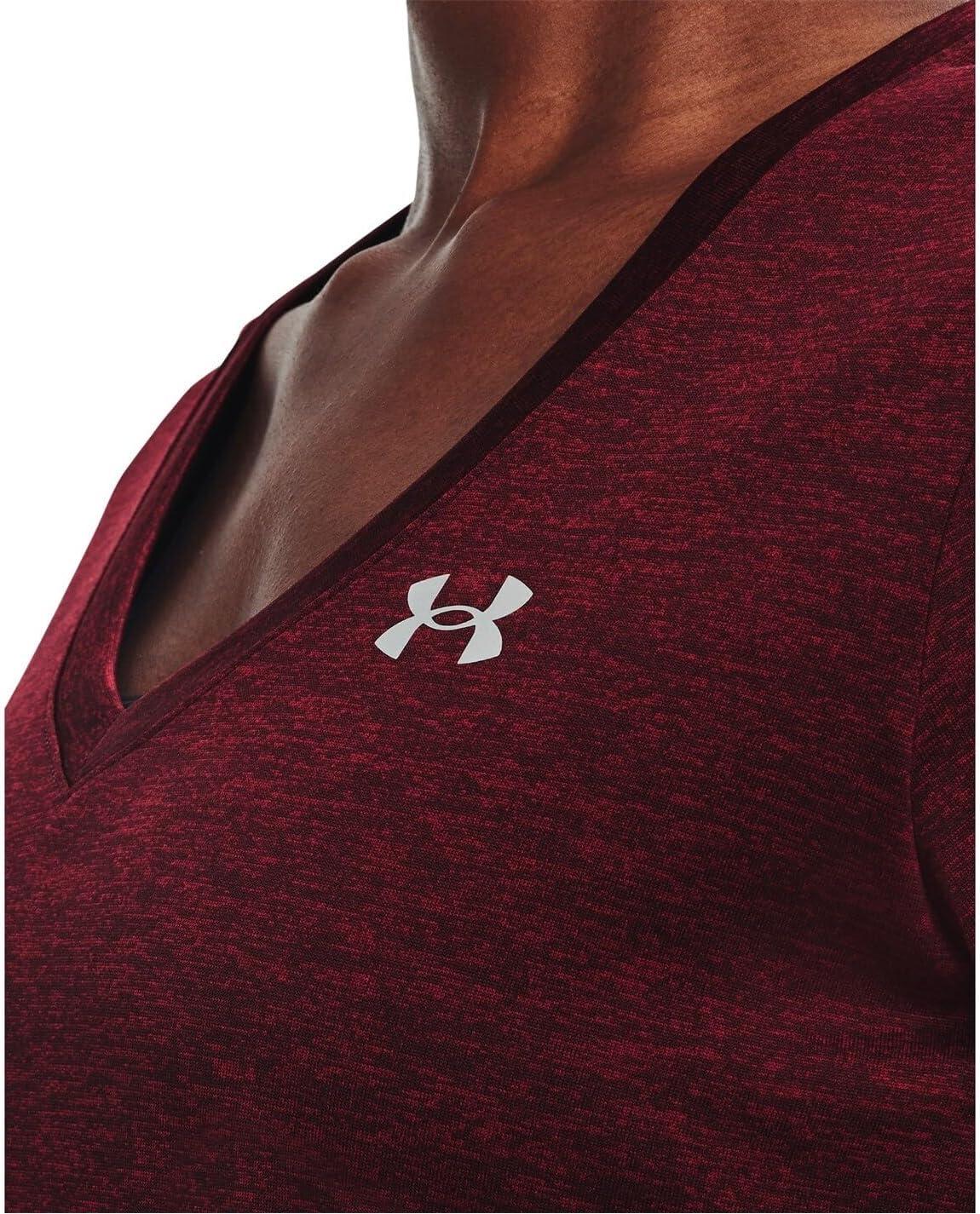 Under Armour Womens Tech V-Neck Twist Short-Sleeve T-Shirt((601) Dark Maroon / Cordova Red / Metallic Silver)