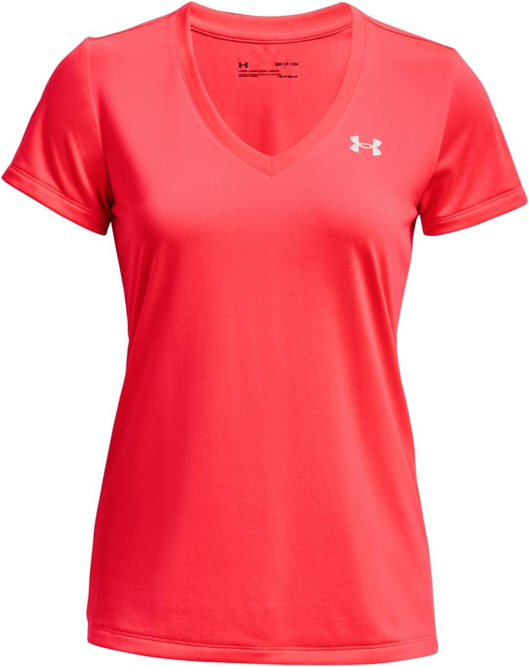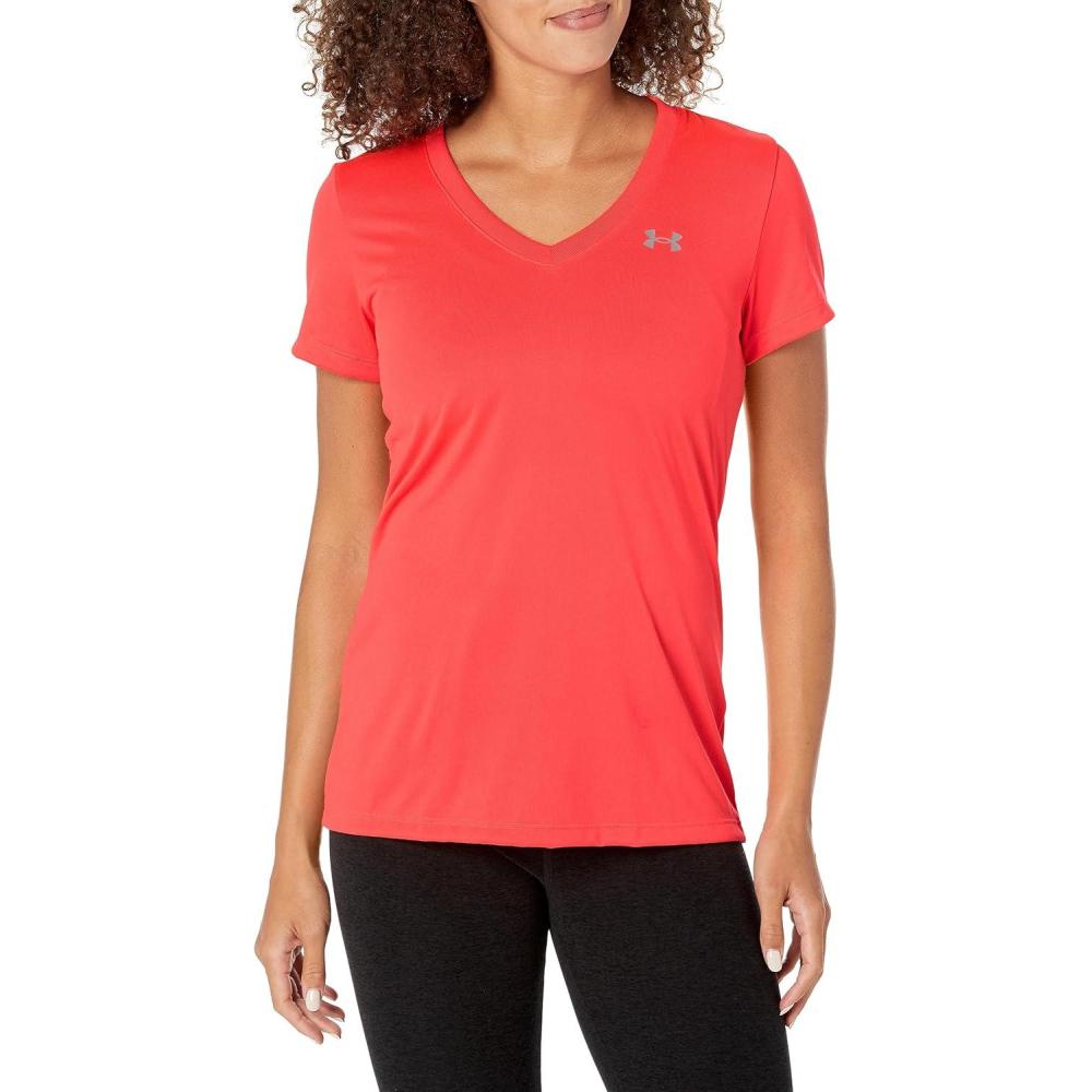The Under Armour women's UA Twisted Tech V-neck T-shirt is loose, light, and it keeps you cool. It's part of our original go-to training gear, and it's everything you need. UA Tech™ fabric is quick-drying, ultra-soft & has a more natural feel. Material wicks sweat & dries really fast. 4-way stretch construction moves better in every direction. Deep V-neck collar. Allover twist effect. Loose:Fuller cut for complete comfort. 100% Polyester.