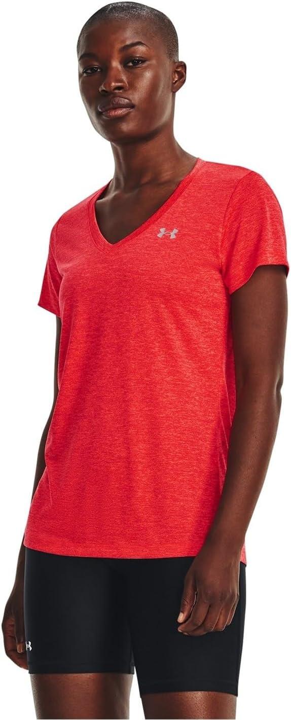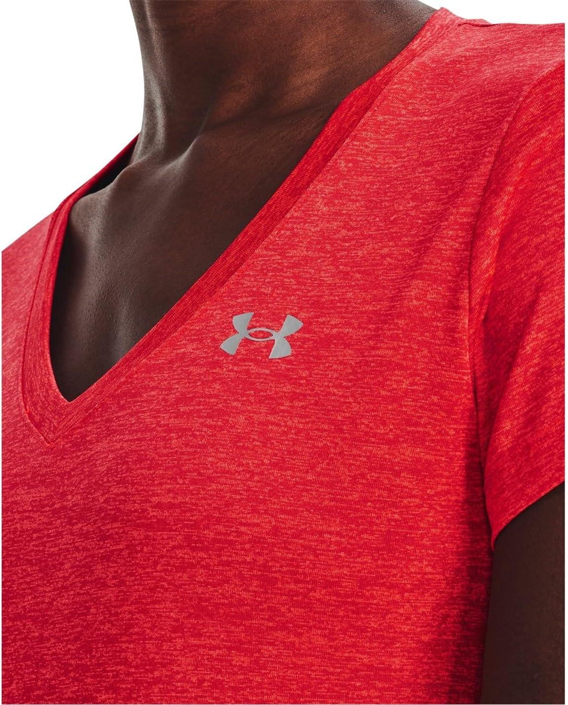 Under Armour Womens Tech V-Neck Twist Short-Sleeve T-Shirt((629) Beta / Pomegranate / Metallic Silver)