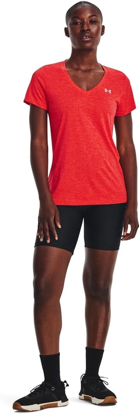 The Under Armour women's UA Twisted Tech V-neck T-shirt is loose, light, and it keeps you cool. It's part of our original go-to training gear, and it's everything you need. UA Tech™ fabric is quick-drying, ultra-soft & has a more natural feel. Material wicks sweat & dries really fast. 4-way stretch construction moves better in every direction. Deep V-neck collar. Allover twist effect. Loose:Fuller cut for complete comfort. 100% Polyester.