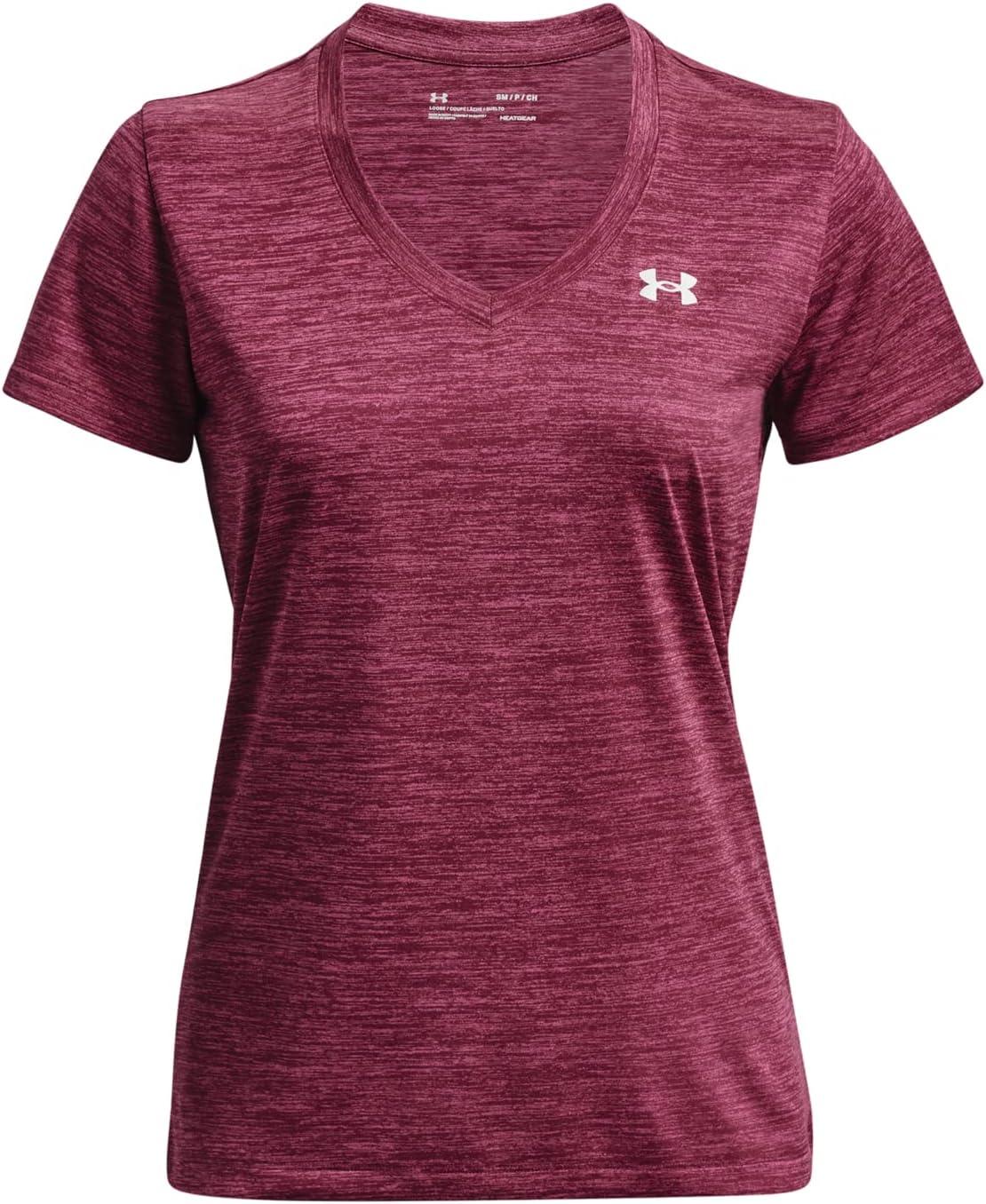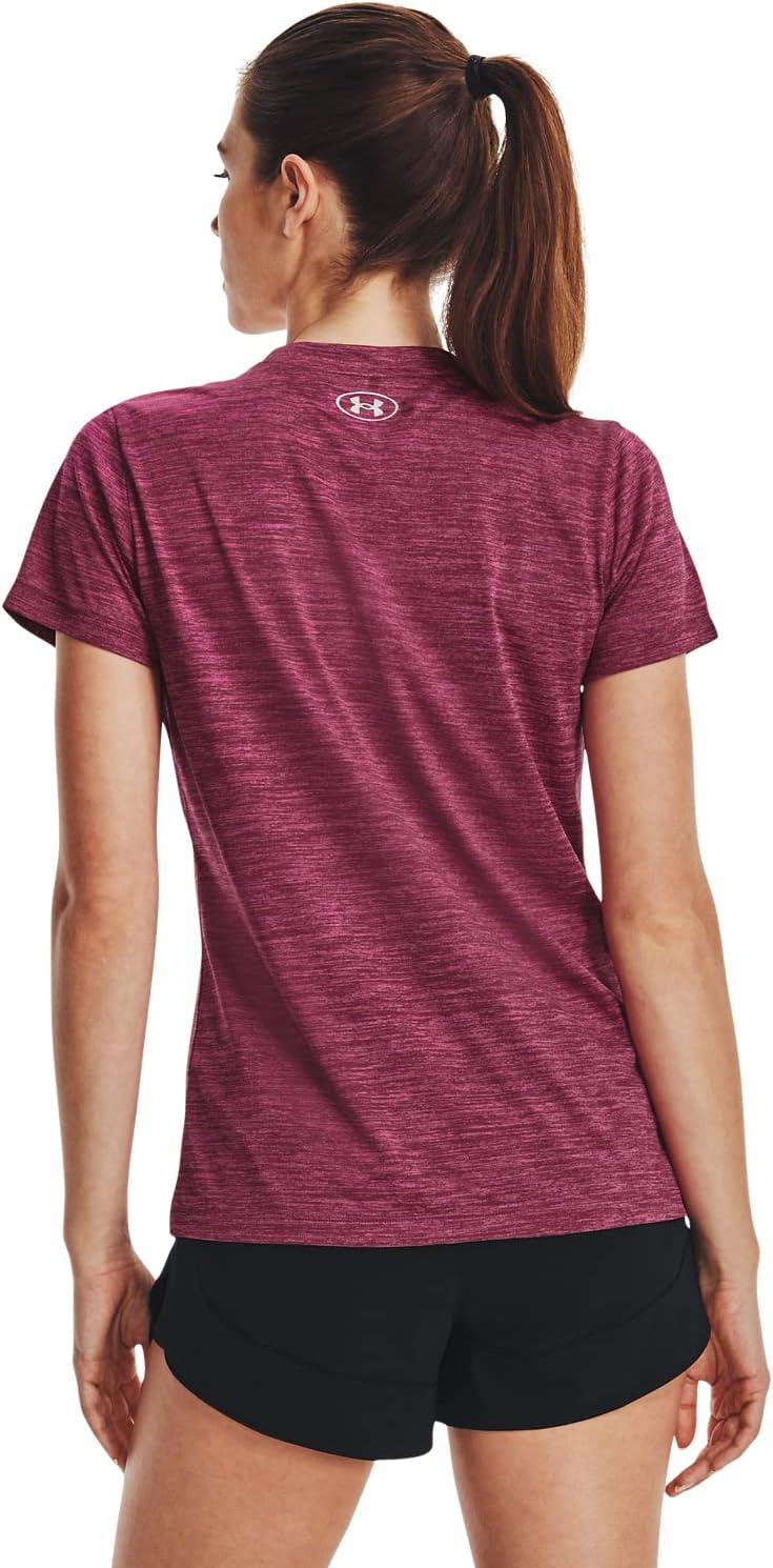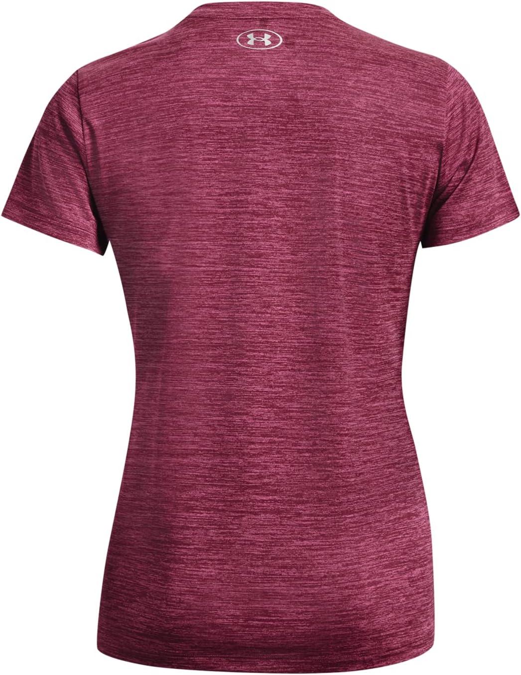 Under Armour Womens Tech V-Neck Twist Short-Sleeve T-Shirt((629) Beta / Pomegranate / Metallic Silver)