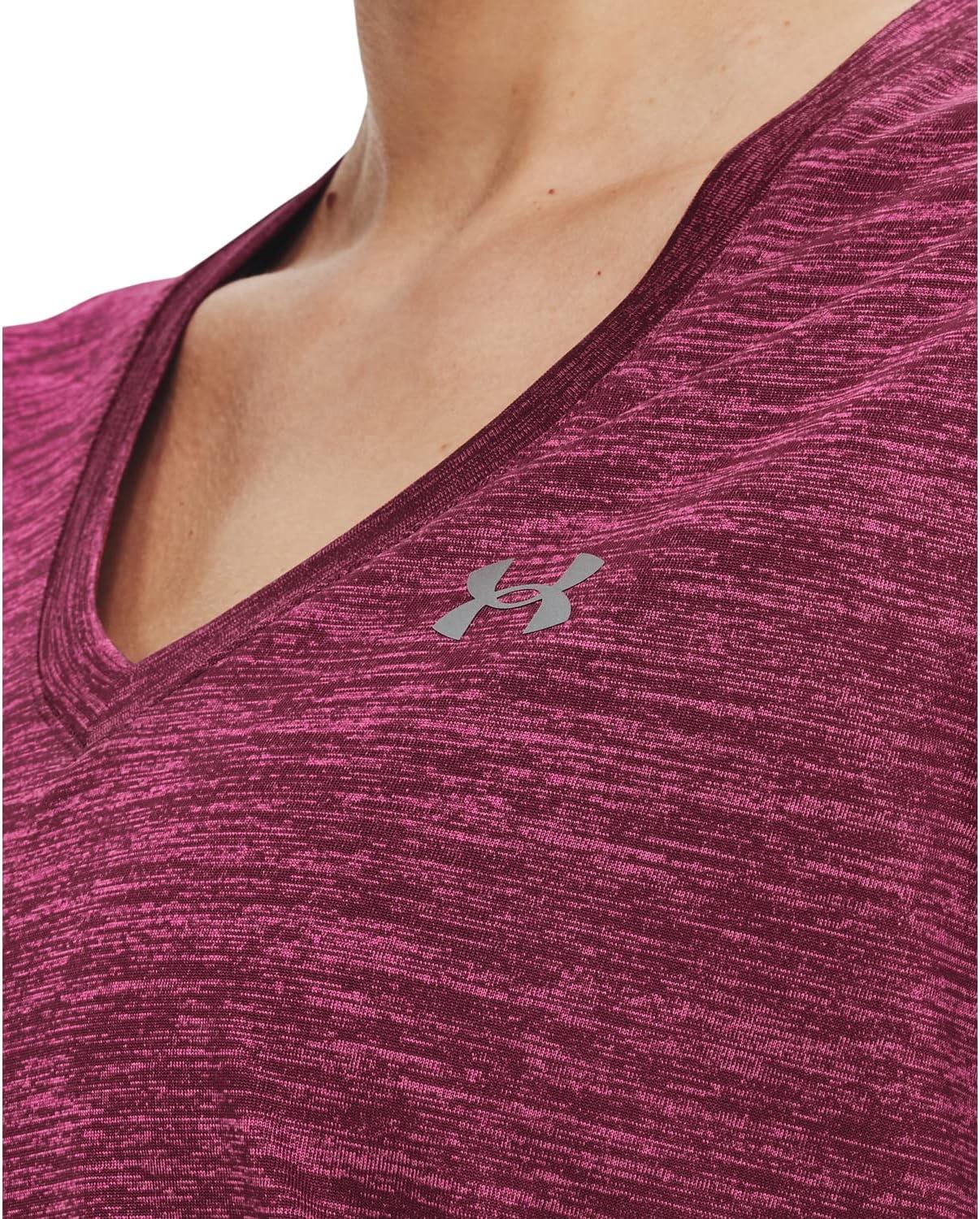 Under Armour Womens Tech V-Neck Twist Short-Sleeve T-Shirt((635) Charged Cherry / Rebel Pink / Metallic Silver)