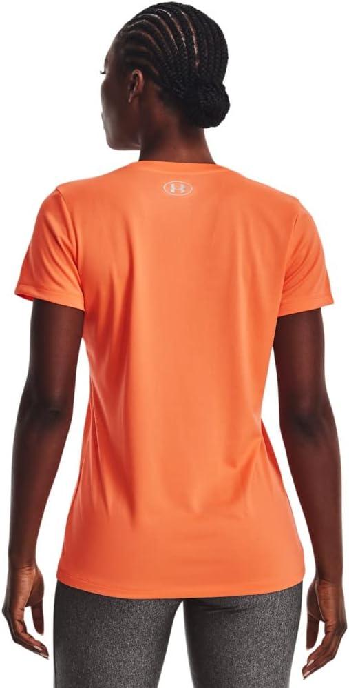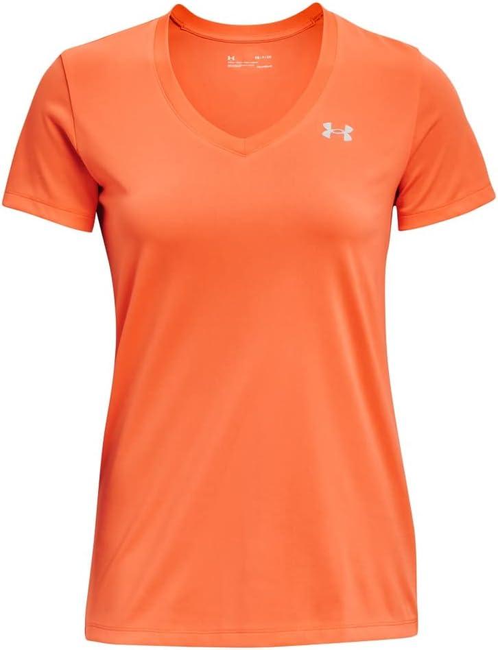 Under Armour Womens Tech V-Neck Twist Short-Sleeve T-Shirt((799) Starfruit / Orange Blast / Metallic Silver)