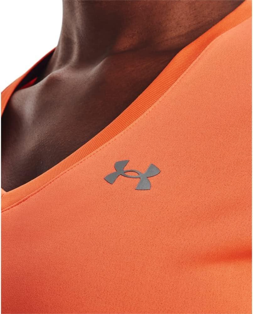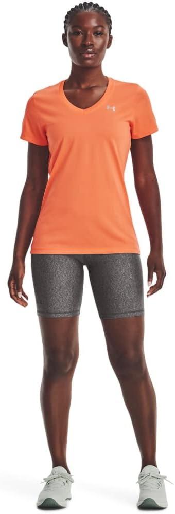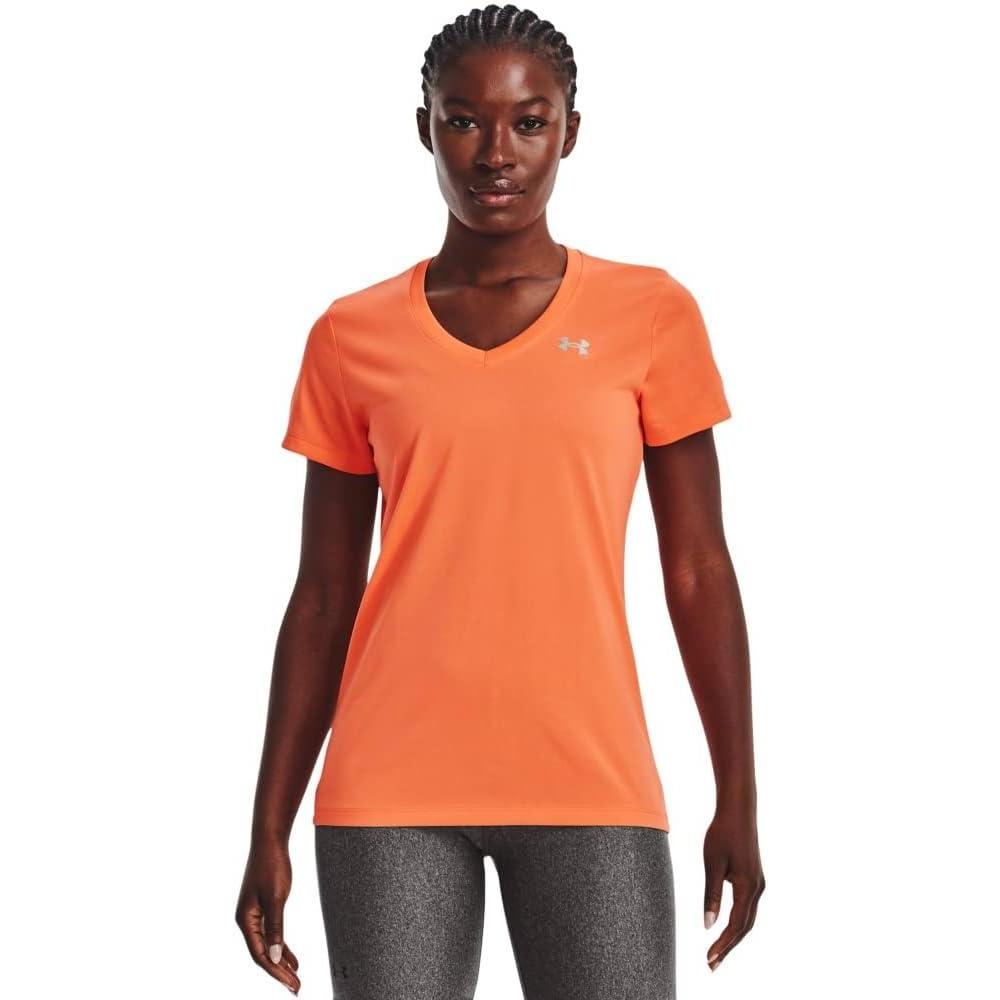 imageUnder Armour Womens Tech VNeck Twist ShortSleeve TShirt799 Starfruit  Orange Blast  Metallic Silver