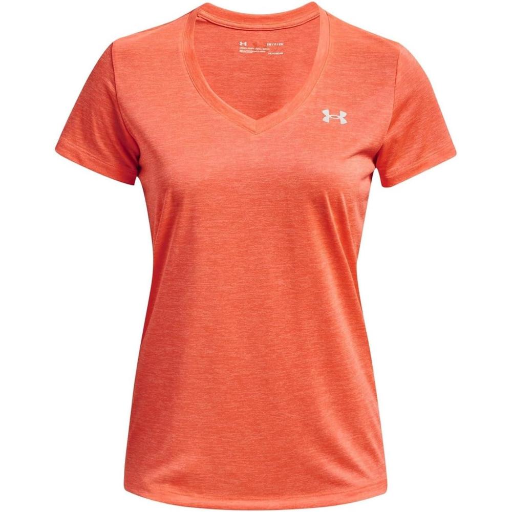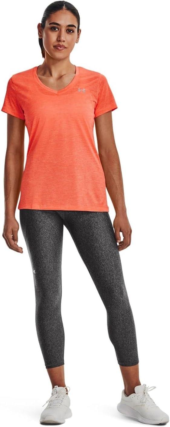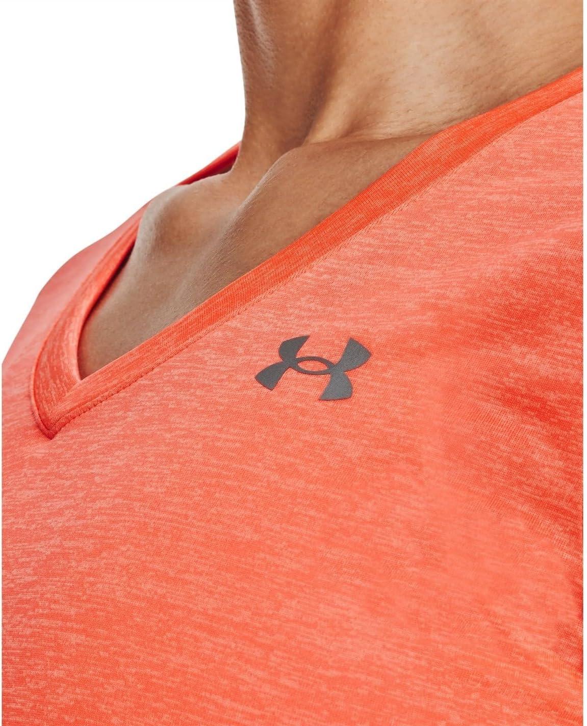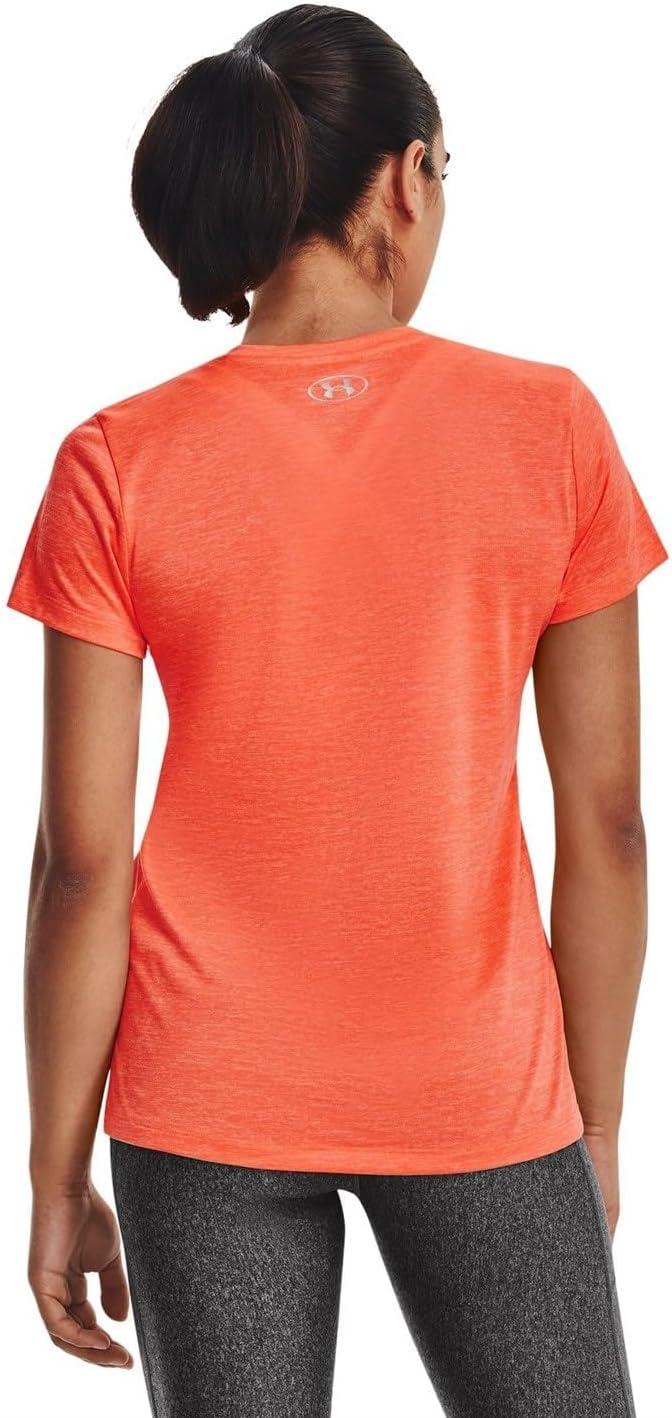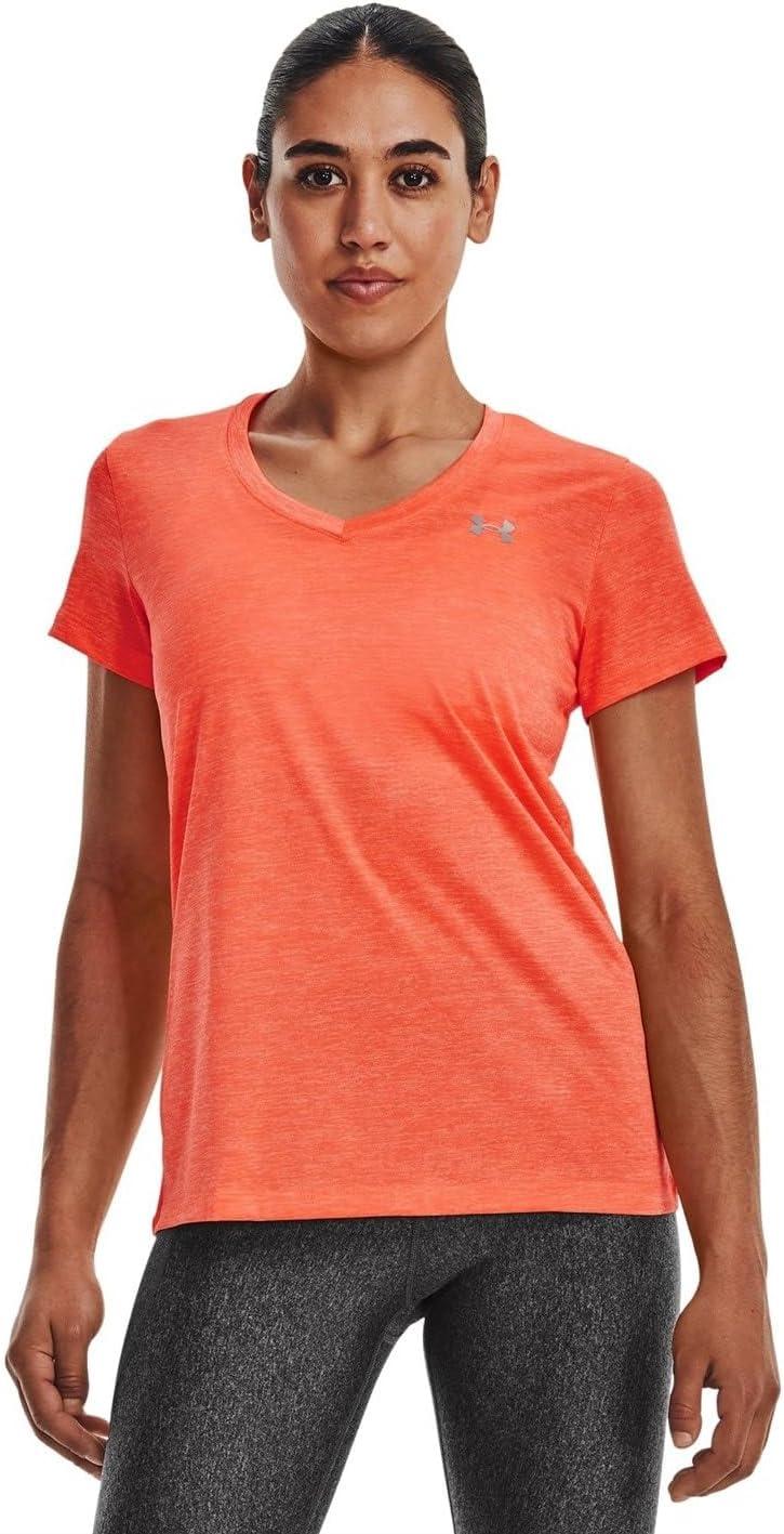 Under Armour Womens Tech V-Neck Twist Short-Sleeve T-Shirt((879) After Burn / White / Metallic Silver)