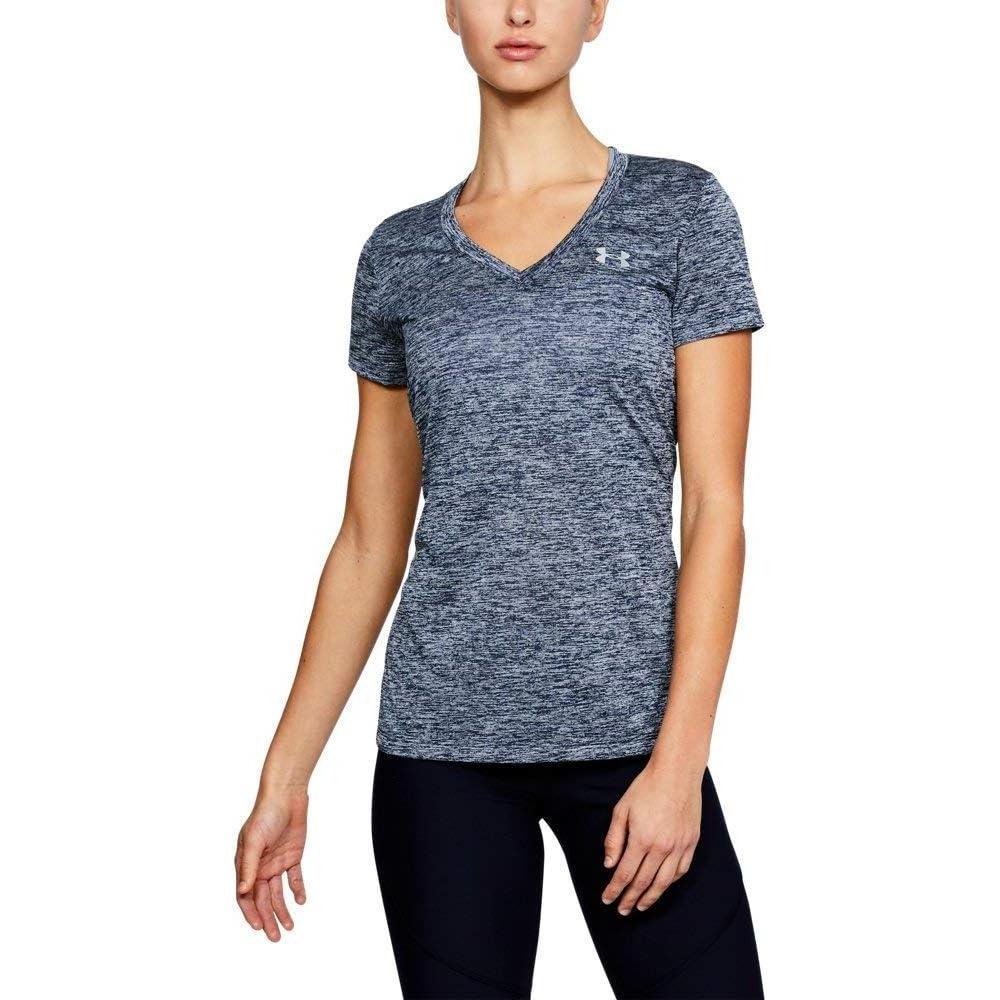 Under Armour Womens Tech V-Neck Twist Short-Sleeve T-Shirt(Academy Blue (408)/Metallic Silver)