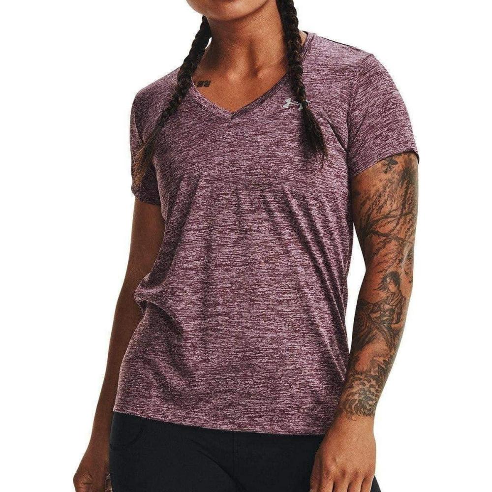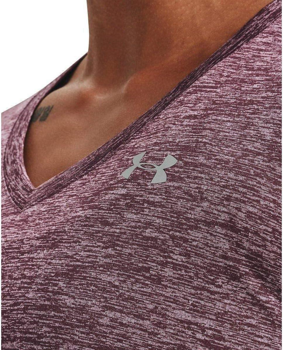 Under Armour Womens Tech V-Neck Twist Short-Sleeve T-Shirt(Ash Plum (554)/Metallic Silver)